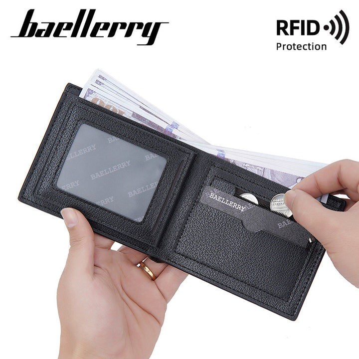 New men's wallet baellerry short business trend multi-card RFID wallet anti-theft explosion