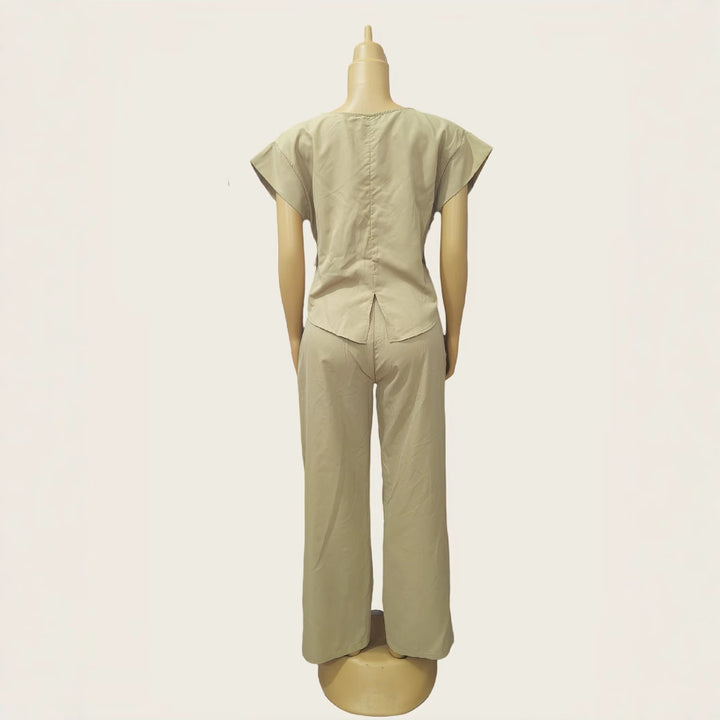 New Middle East and Africa women's clothing, round neck waist printed short sleeves, multi-pocket loose straight pants set