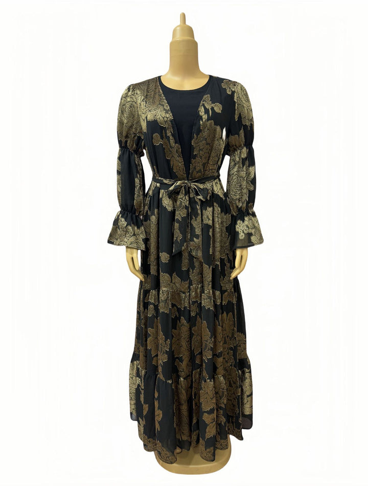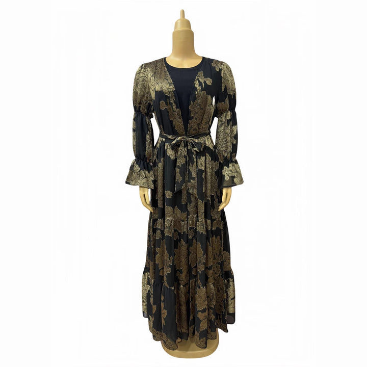 New Middle East Muslim robe, fashionable temperament jacquard chiffon fabric two-piece dress D801