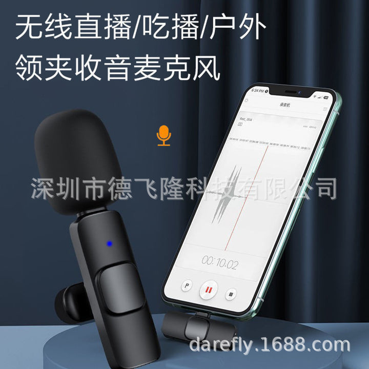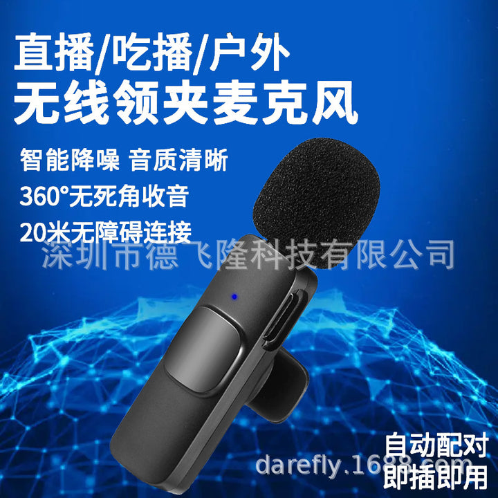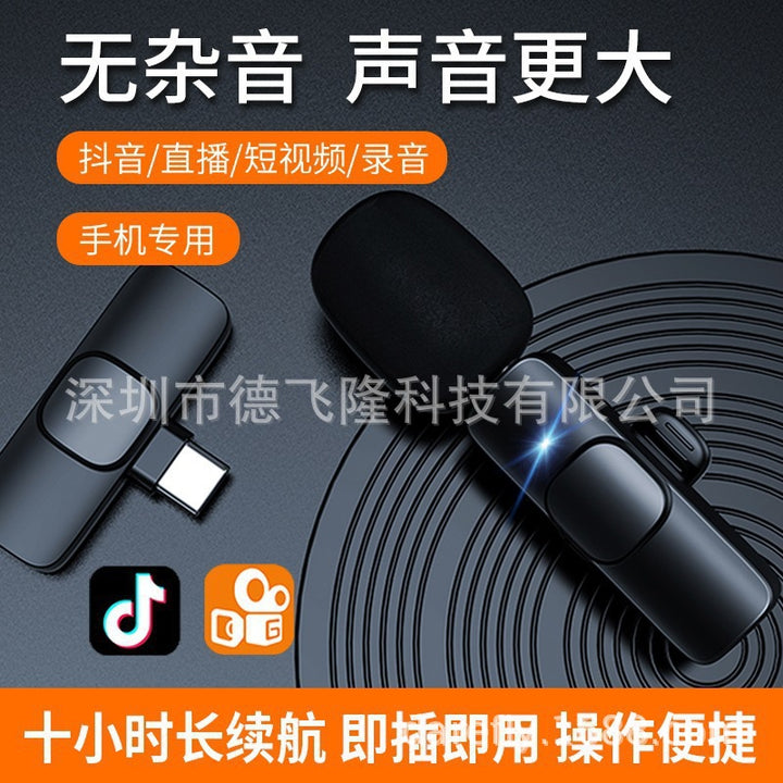 New mini mobile phone live broadcast collar type wireless microphone outdoor video shooting noise reduction windproof radio microphone
