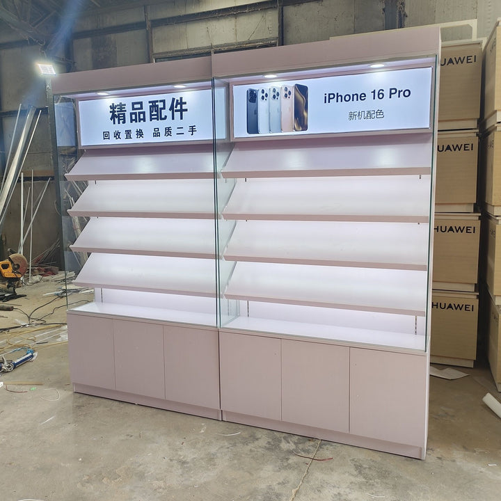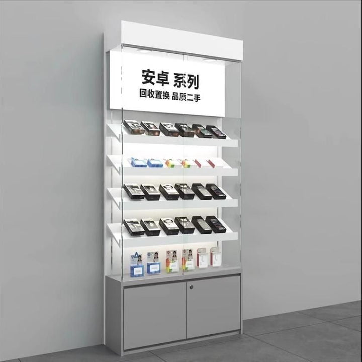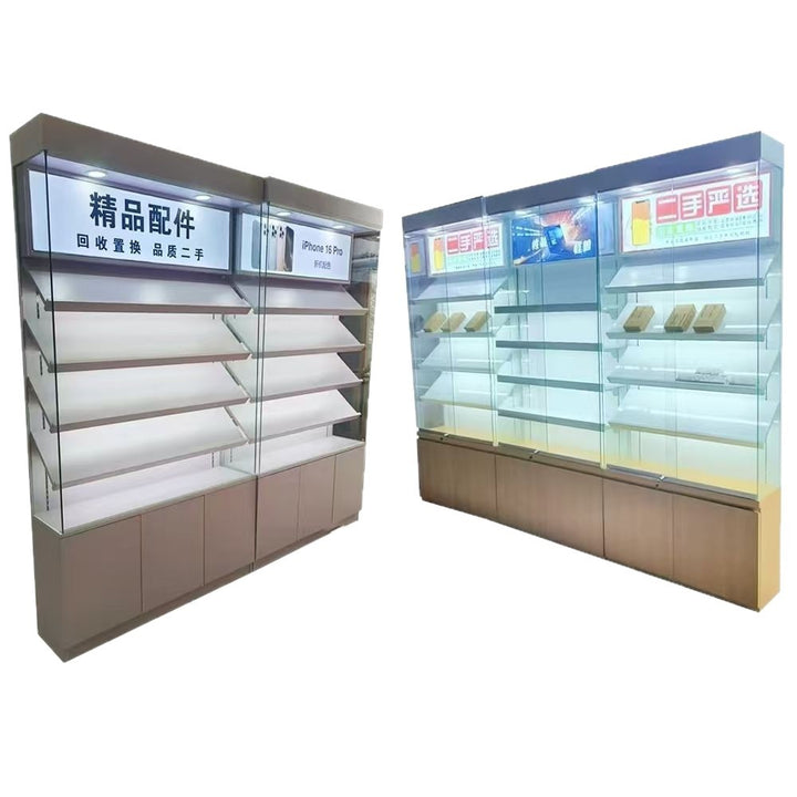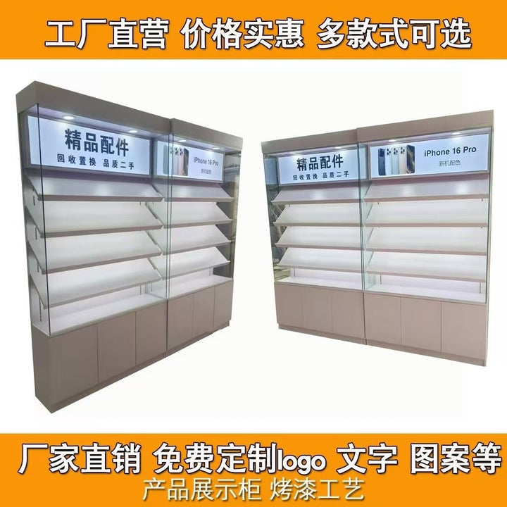 New mobile phone accessories cabinet Apple display cabinet pat strictly selected glass counter against the wall digital shelf high cabinet