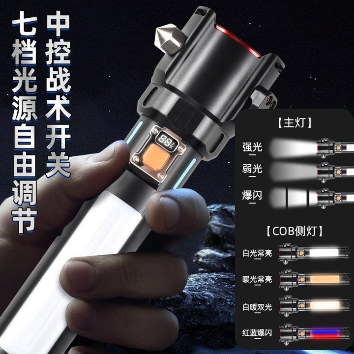 New multi-function strong light flashlight type-c charging, outdoor lighting long battery life 26650 long flashlight