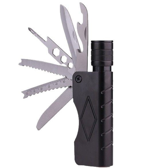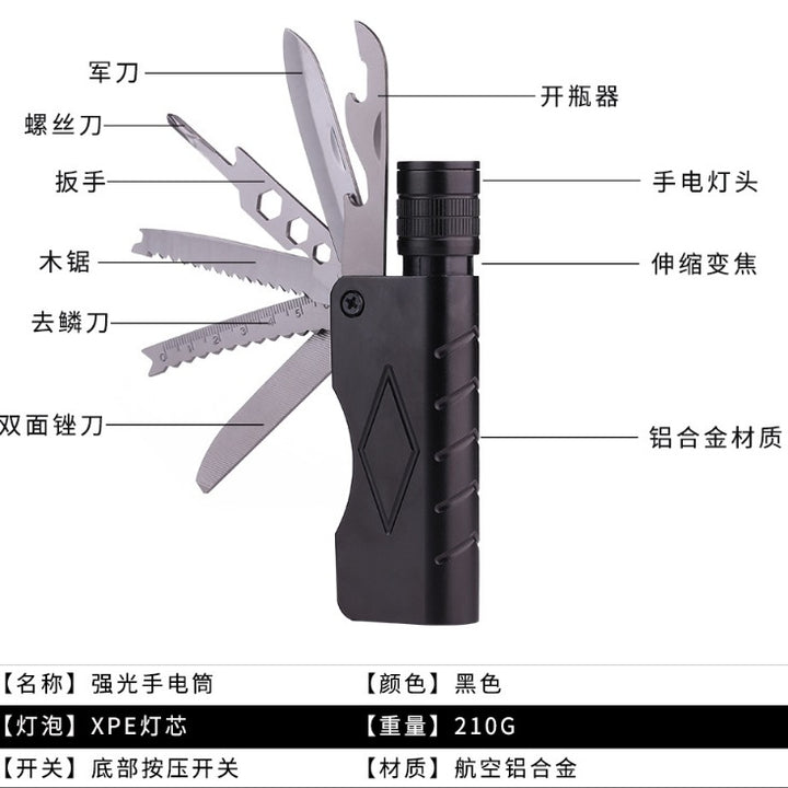 New multi-function tool strong light flashlight camping mountaineering with knives led strong light charging flashlight