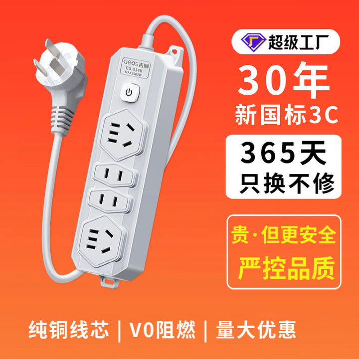 New national standard 3C flame retardant safety power strip integrated pure copper plug-in board anti-shock socket manufacturers wholesale and reta...