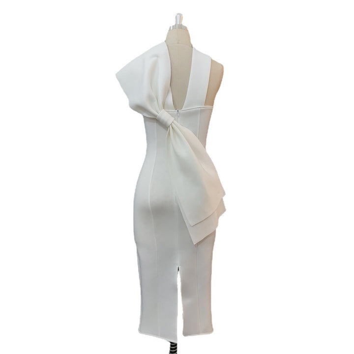New neck sleeveless bow sexy backless dress dress, high waist large size slim dress women's dresses