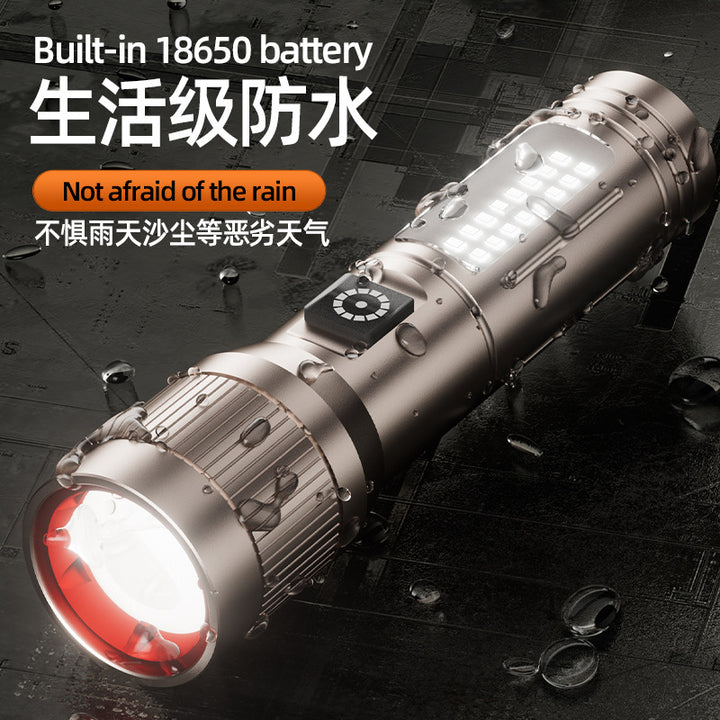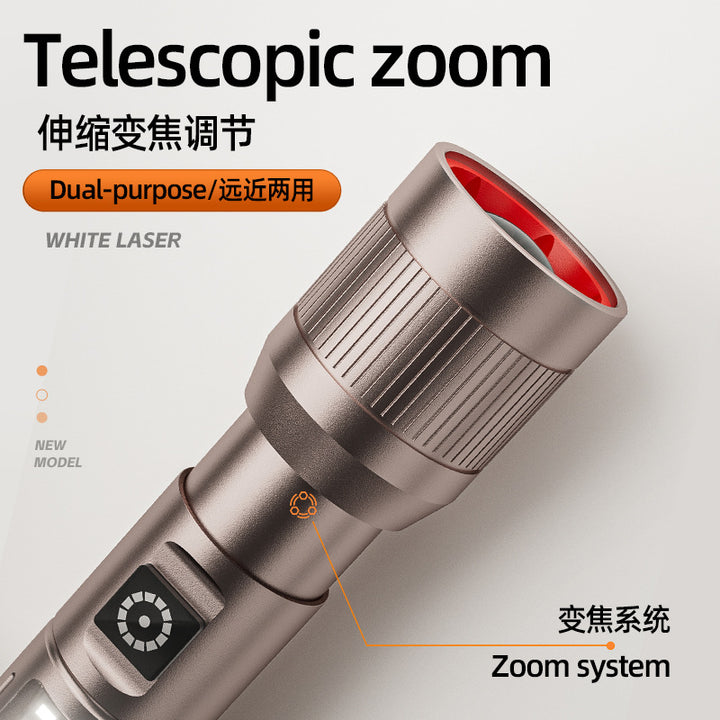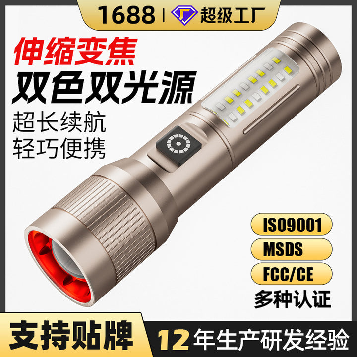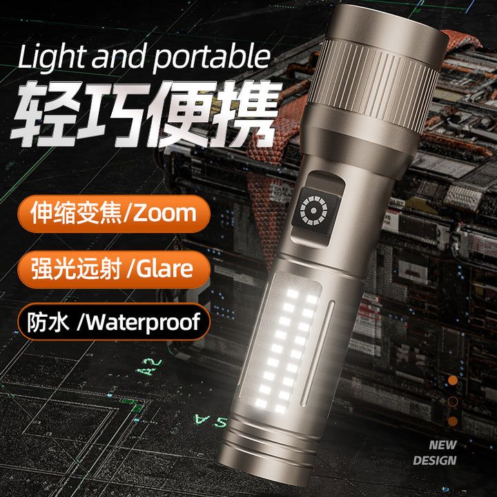 New outdoor flashlight charging portable side light emergency light long battery life telescopic zoom flashlight strong light
