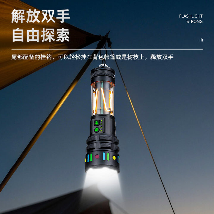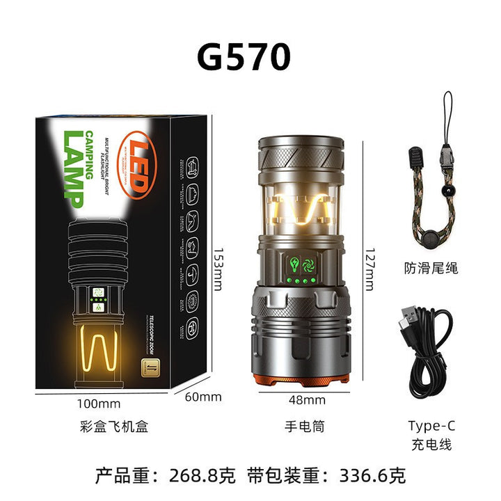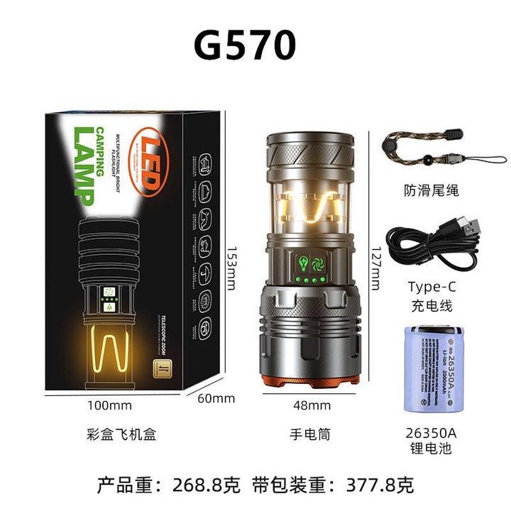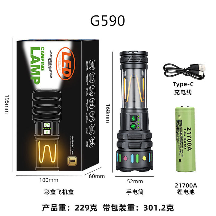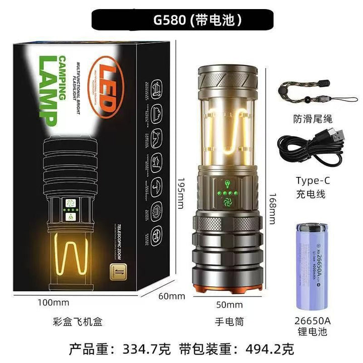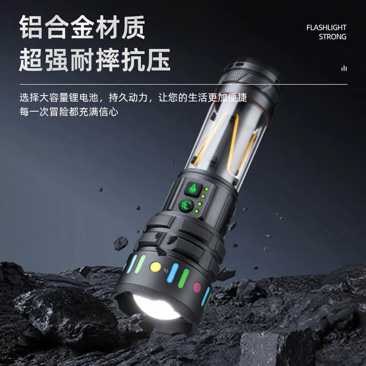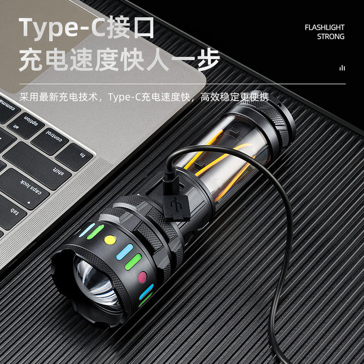 New outdoor strong light flashlight type-c rechargeable lighting multi-function large-capacit...