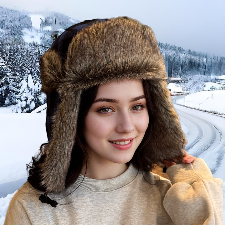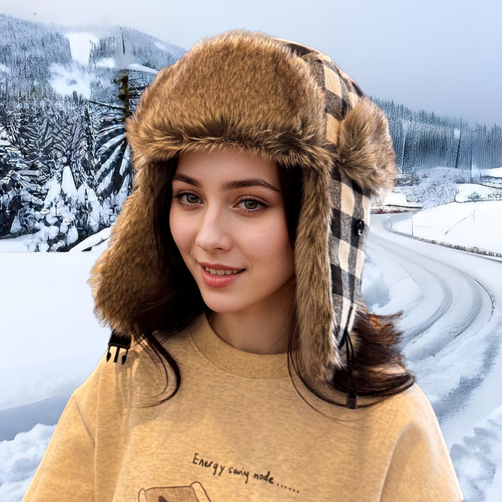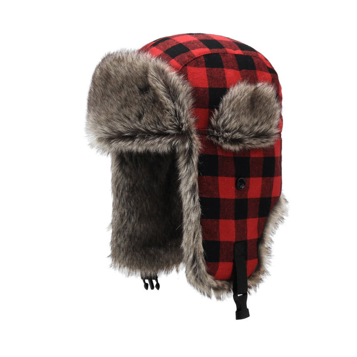 New plaid Lei Feng hat polyester cotton three-color wool supply thickened warm hat winter ear protection hat plush cap
