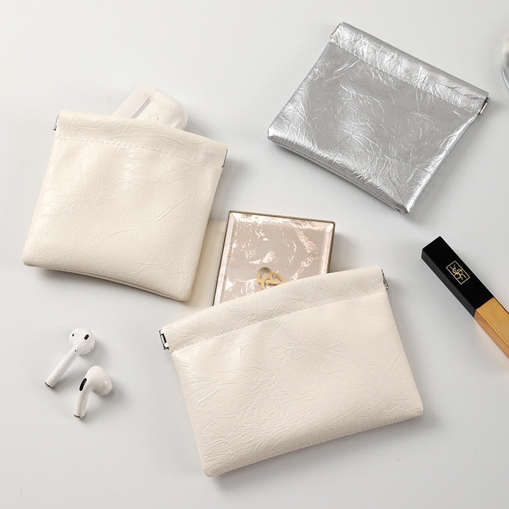 New retro shrapnel automatic tight mouth storage bag simple mini earphone bag small mouth red envelope portable change bag