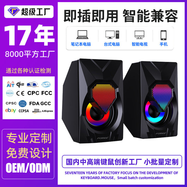 New RGB Luminous Audio Desktop Laptop USB Desktop Multimedia Creative 2.0 Wired Speaker