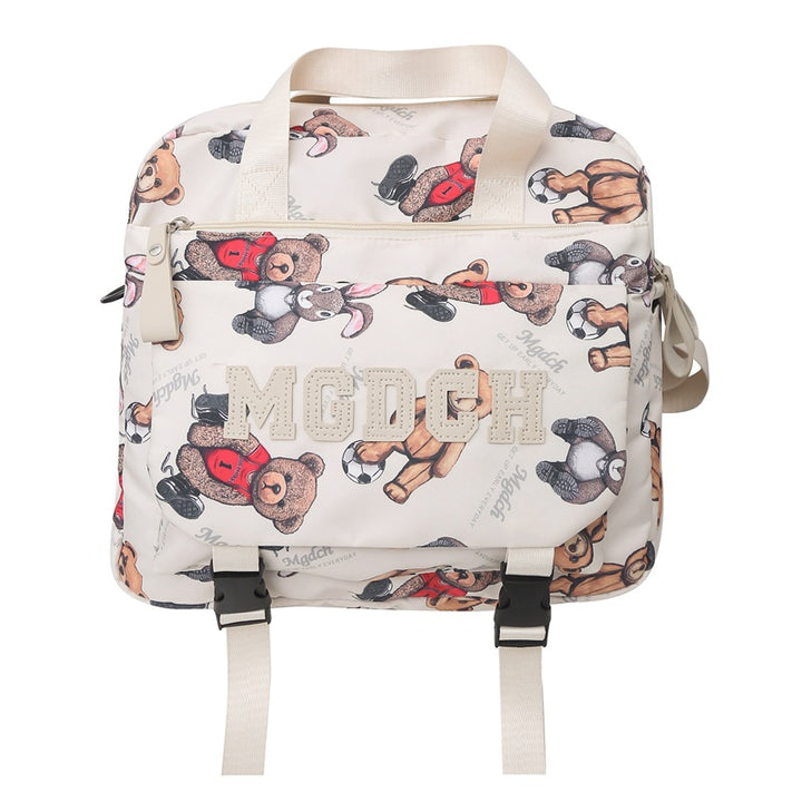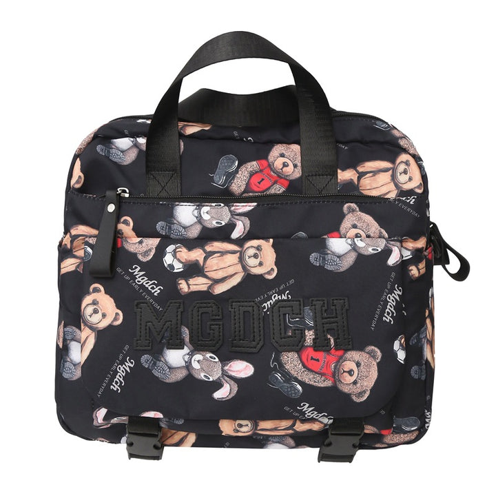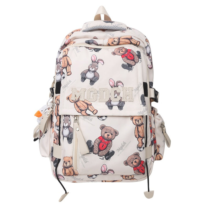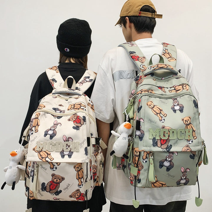 New schoolbag for female junior high school students, simple printed bear, large-capacity backpack, trendy college student couple computer bag