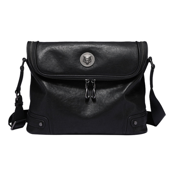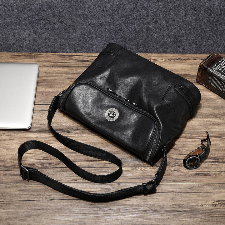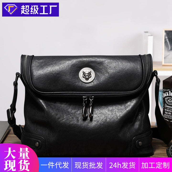 New shoulder bag men's leather casual multi-functional vertical messenger bag first layer cowhide large capacity men's bag trendy and lightweight