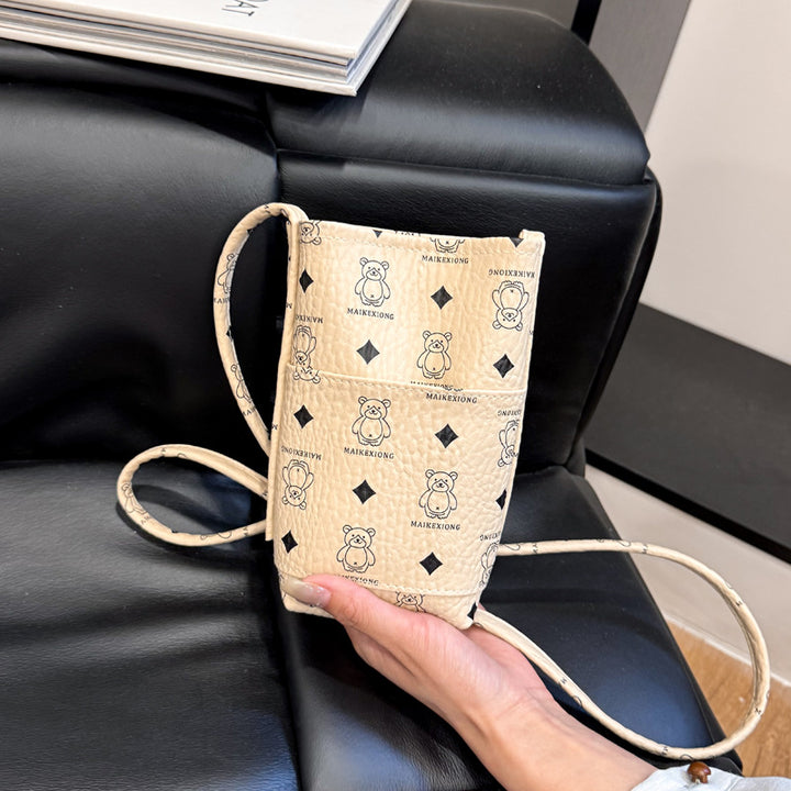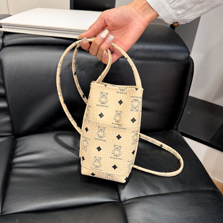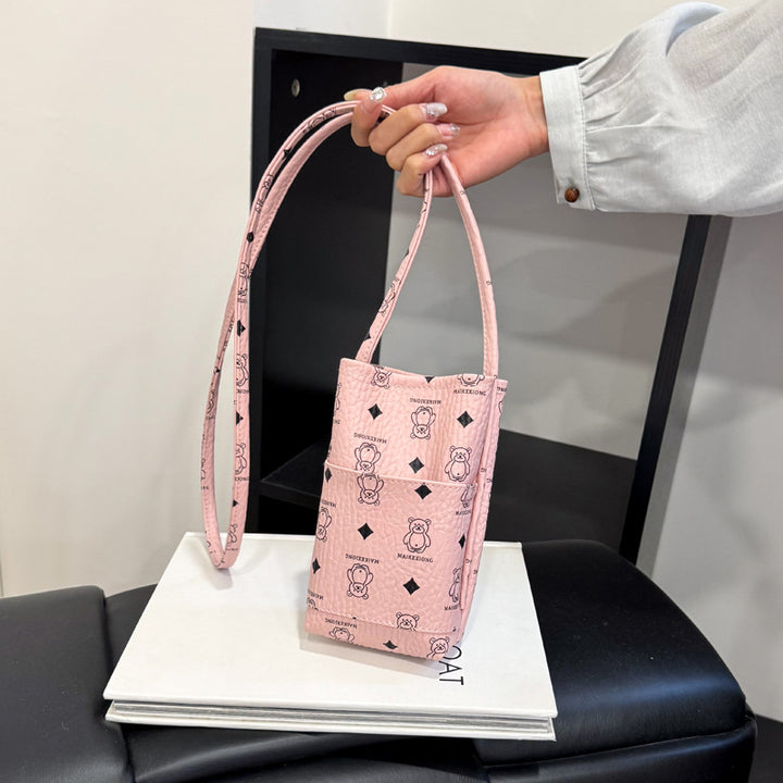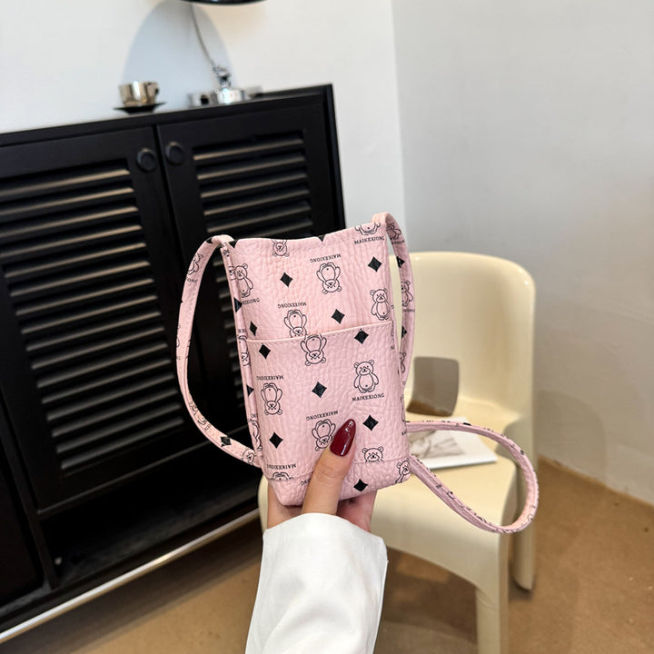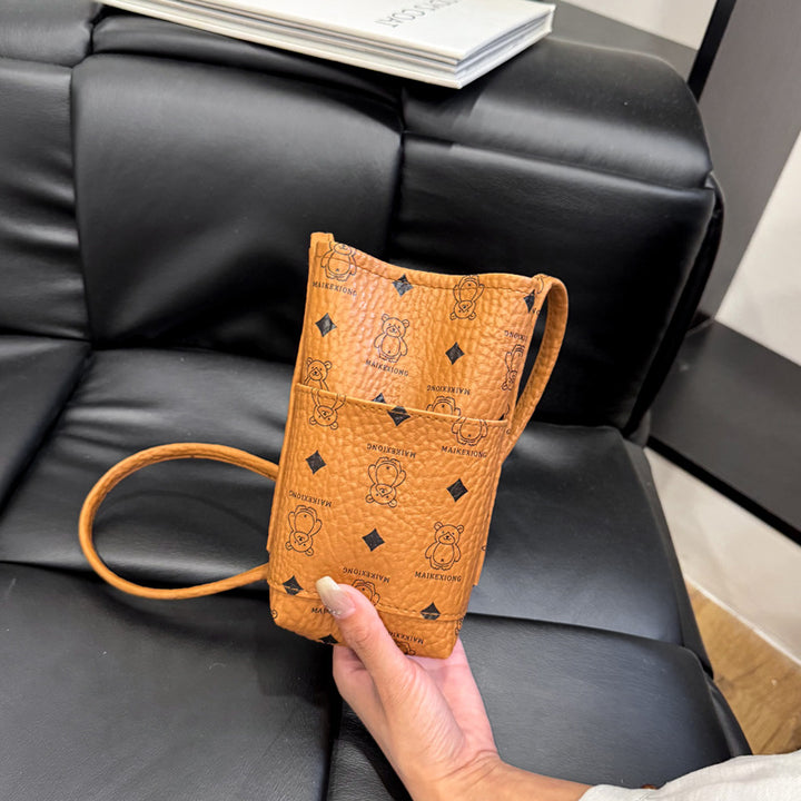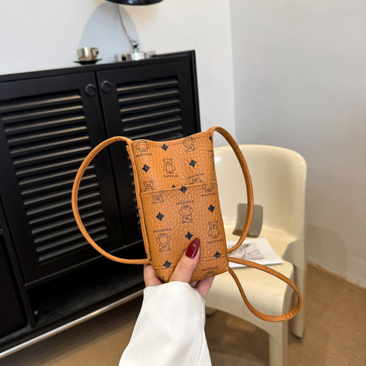 New shoulder bag niche aesthetic fashion foreign trend printing vertical mobile phone bag high texture messenger bag
