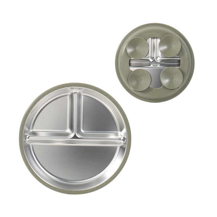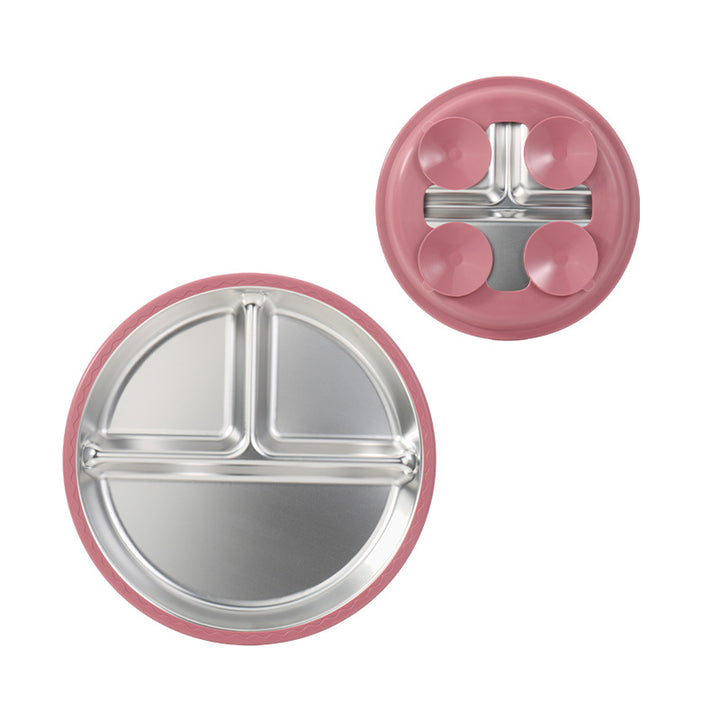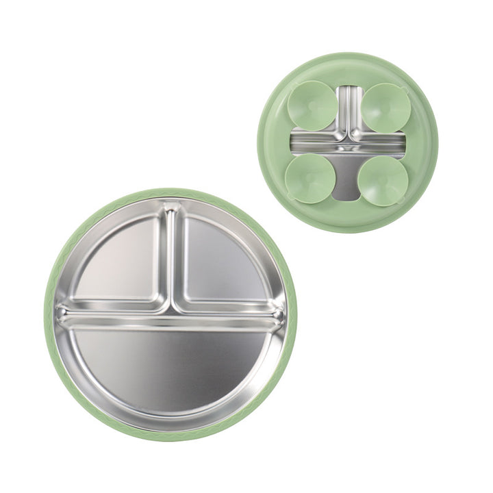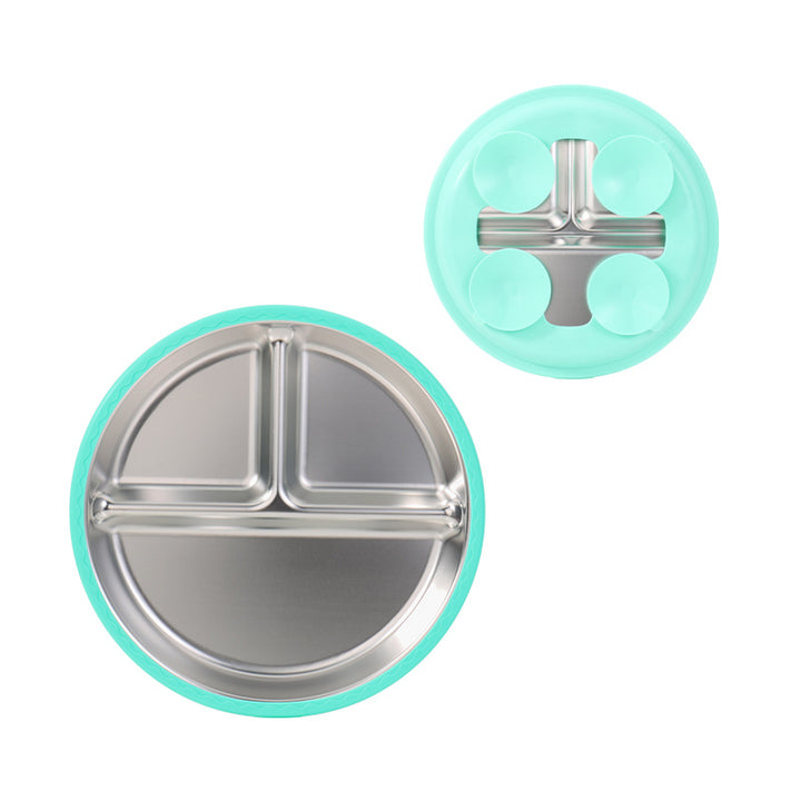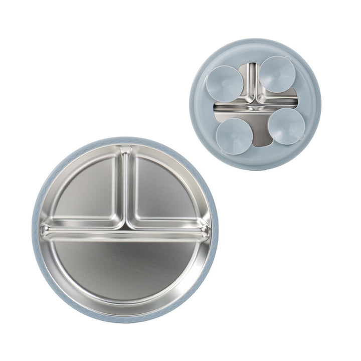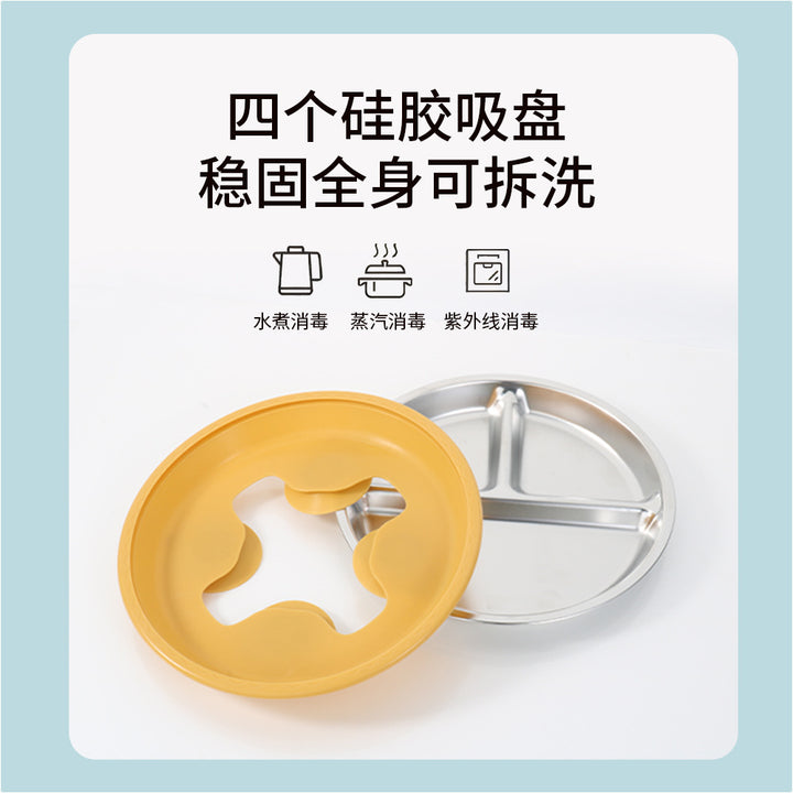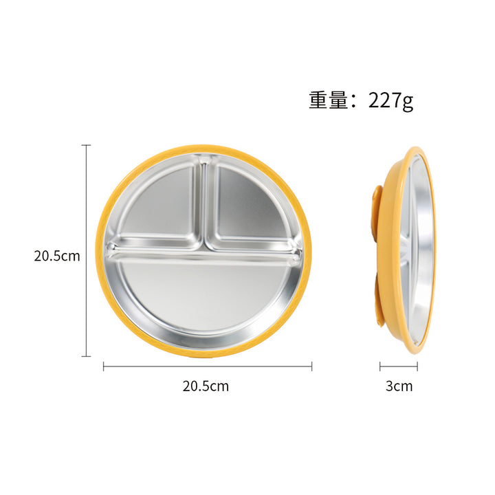 New silicone 304 stainless steel plate diameter 20cm with 4 suction cups baby silicone feedin...