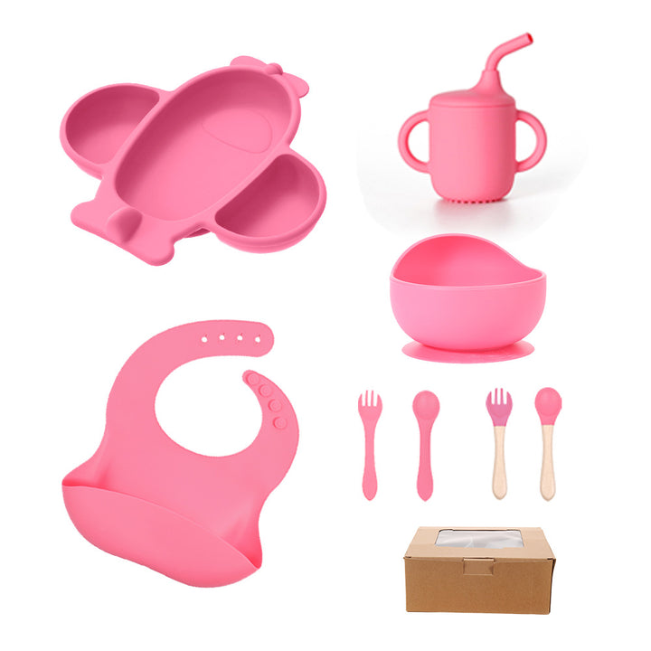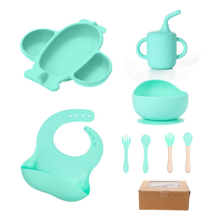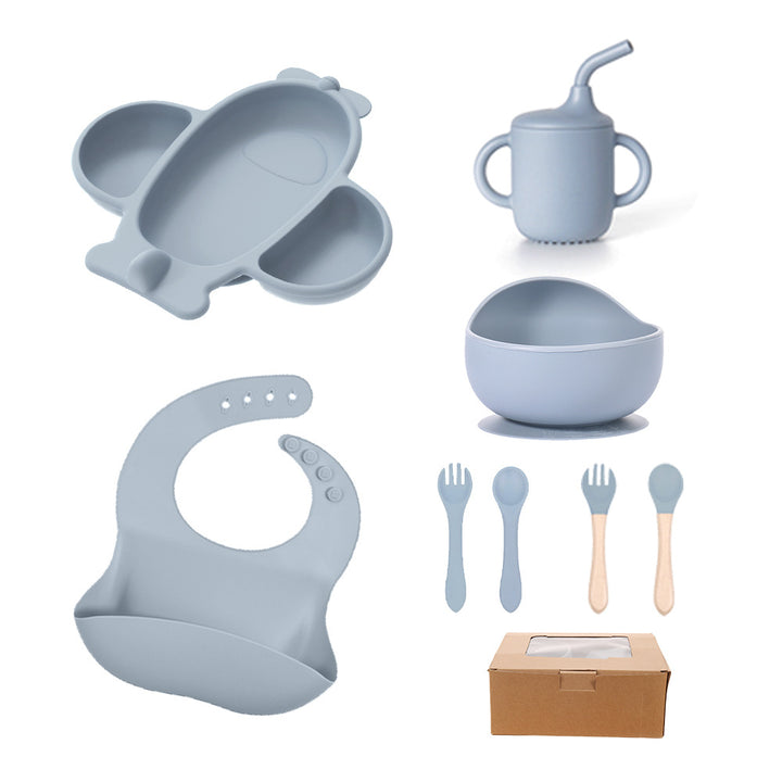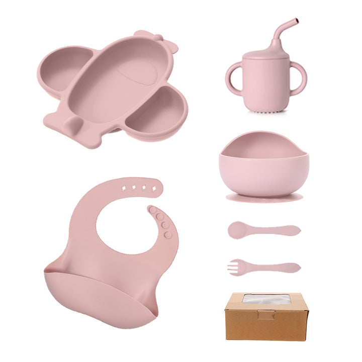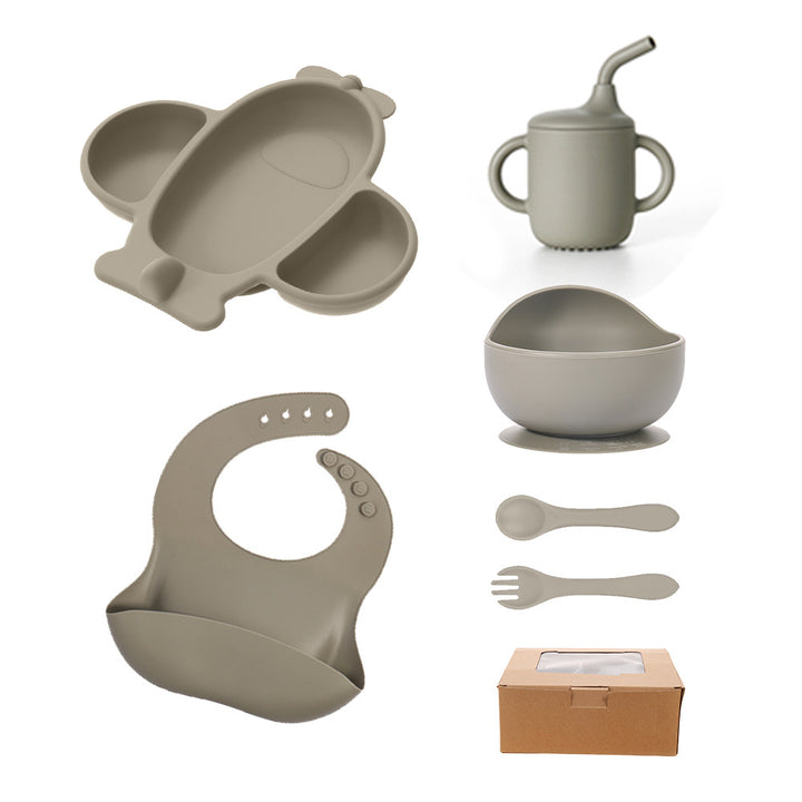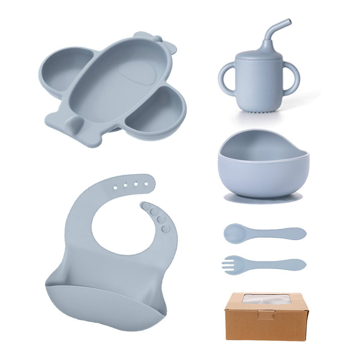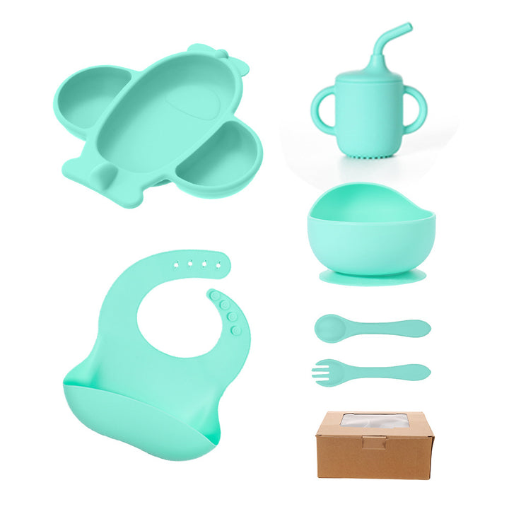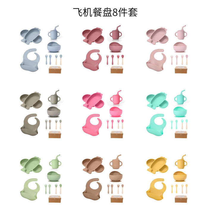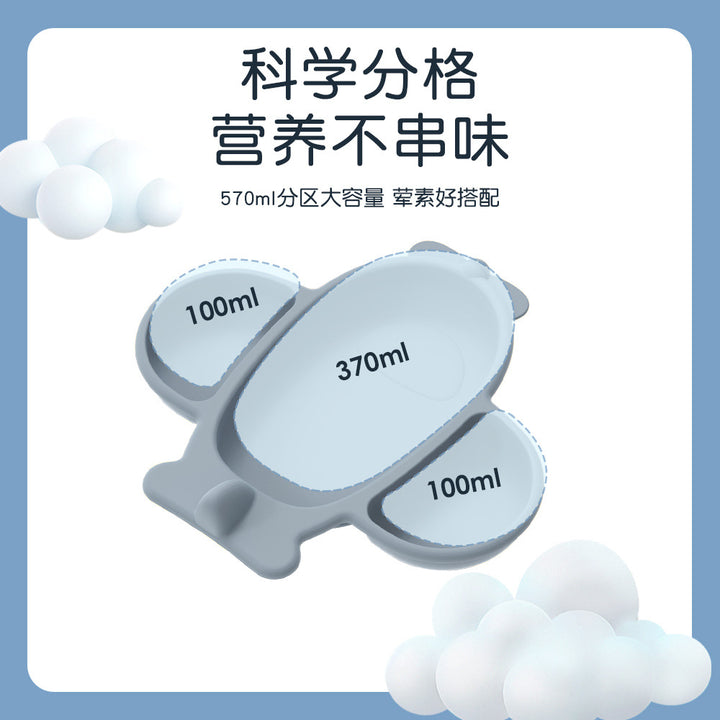 New Silicone Airplane Plate Set Baby Grid Plate Platinum Silicone Gift Feeding Plate Set