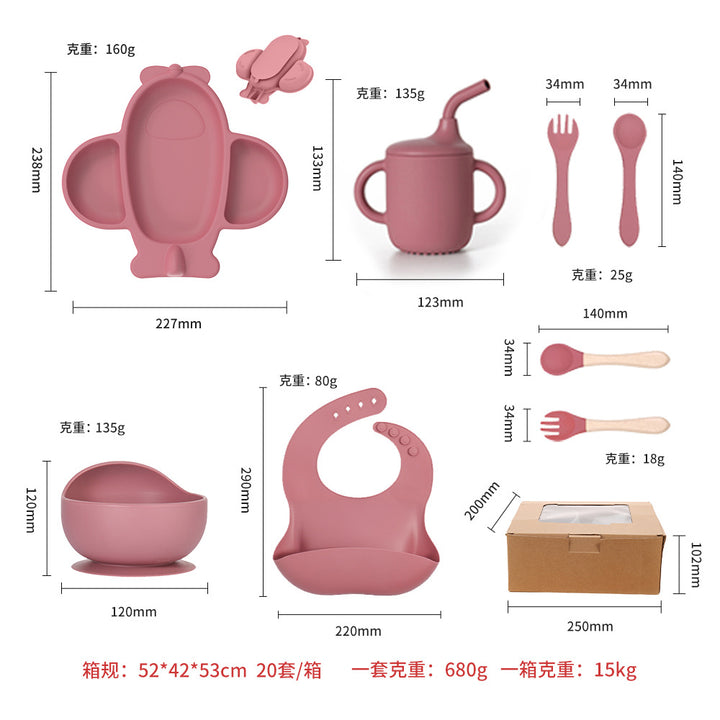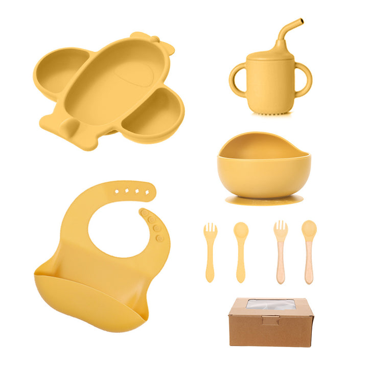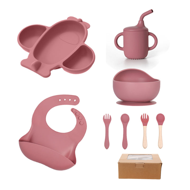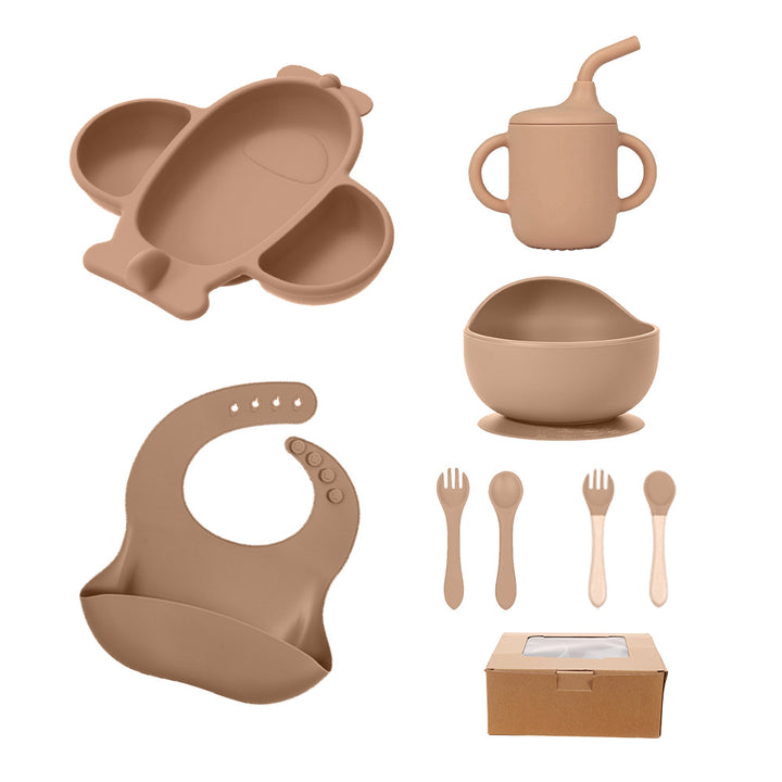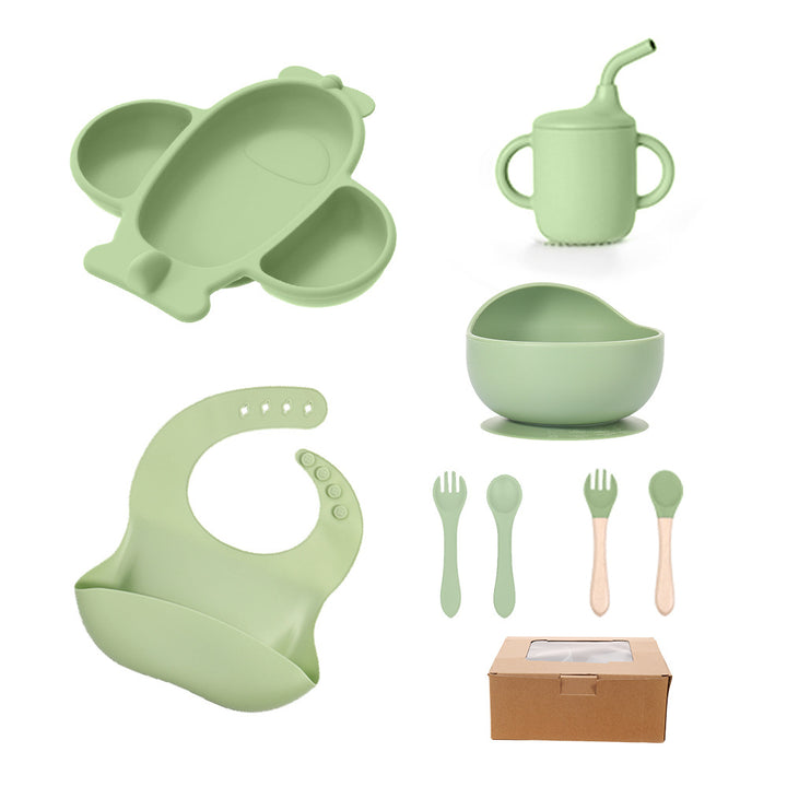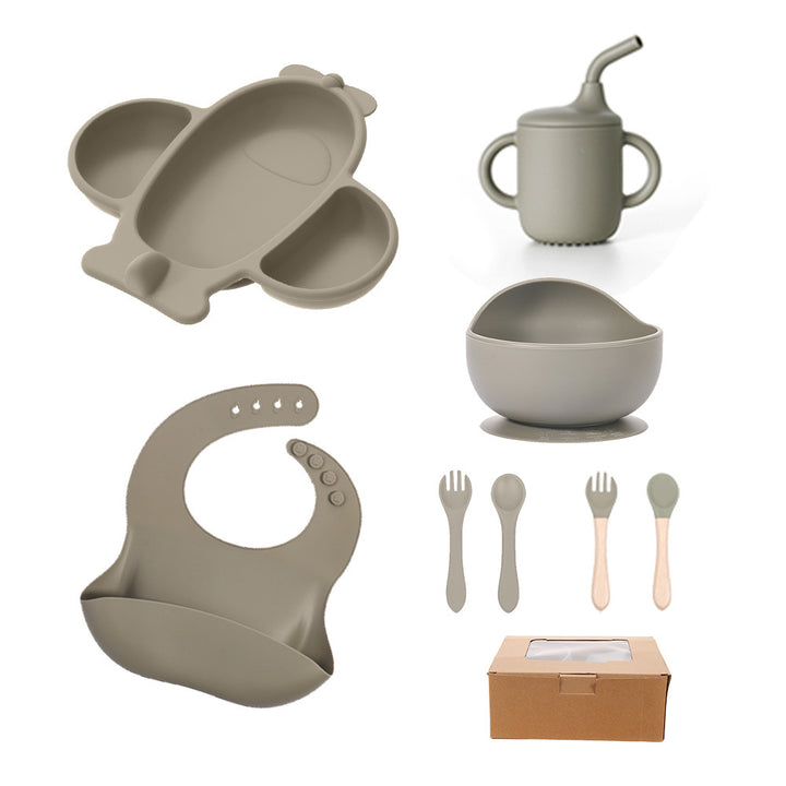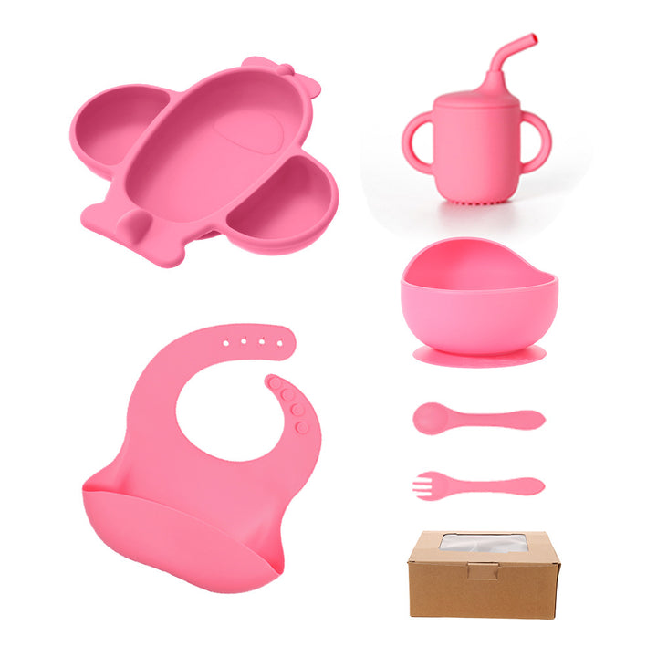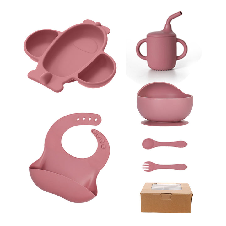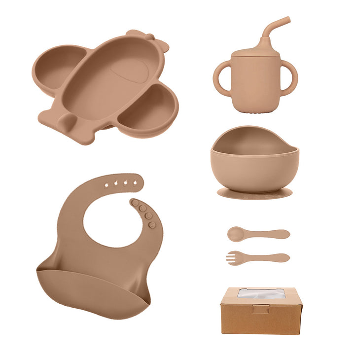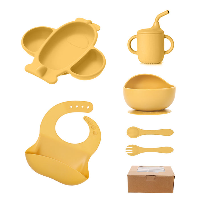 New Silicone Airplane Plate Set Baby Grid Plate Platinum Silicone Gift Feeding Plate Set