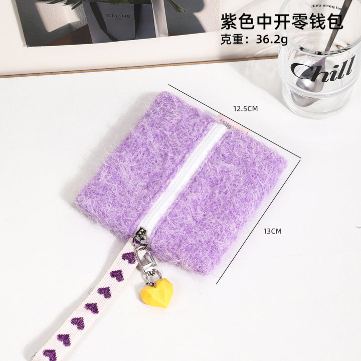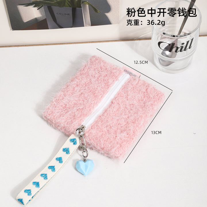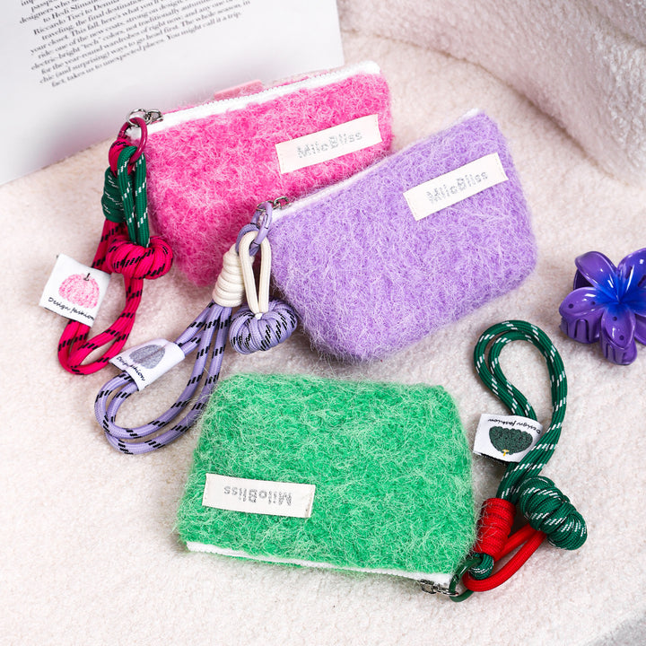 New simple and fashionable plush cosmetic bag, solid color cute storage bag, portable hand-he...