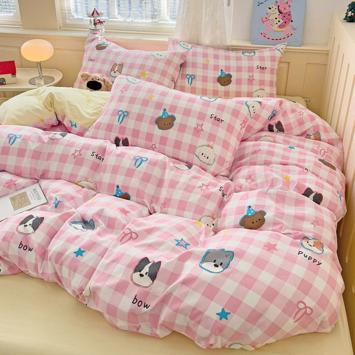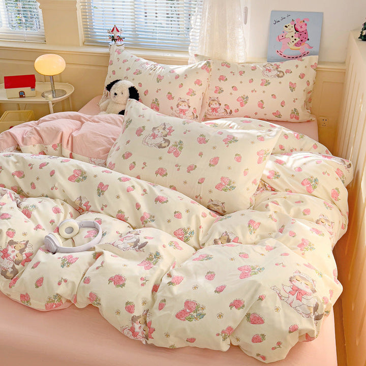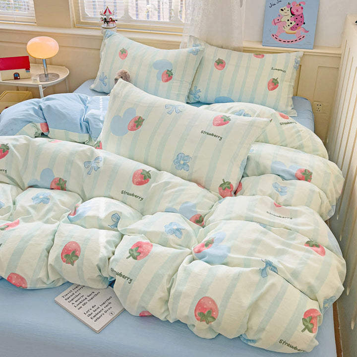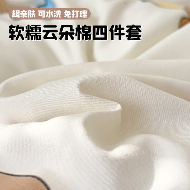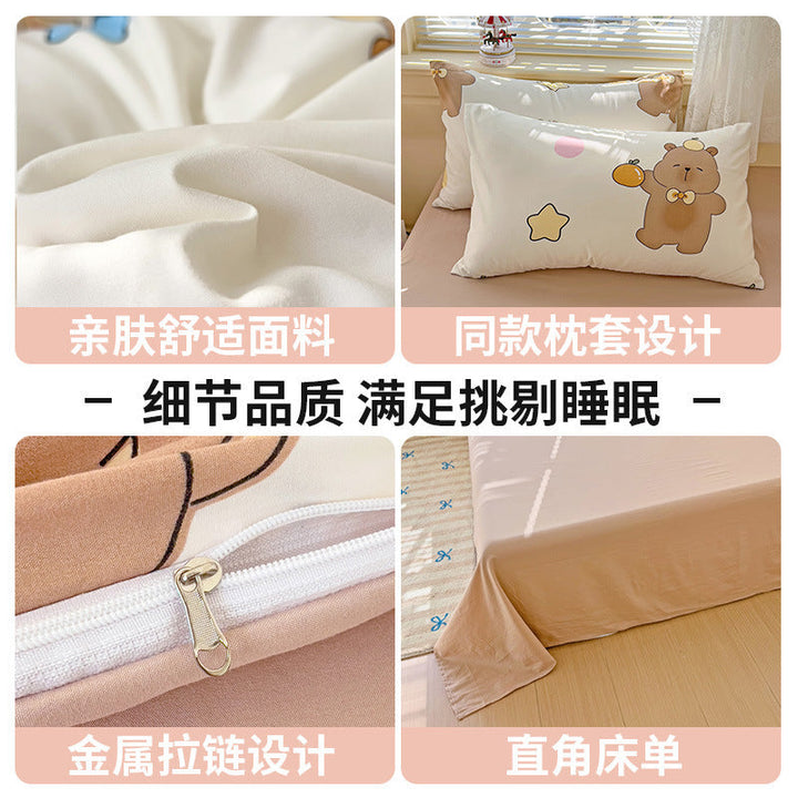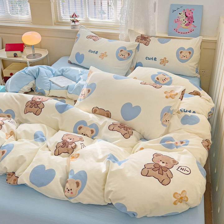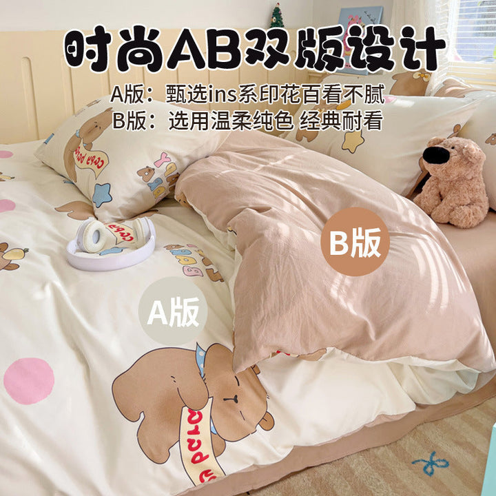 New small fresh four-piece set, student dormitory three-piece set, bed sheet, bed hat, household children's printed bedding