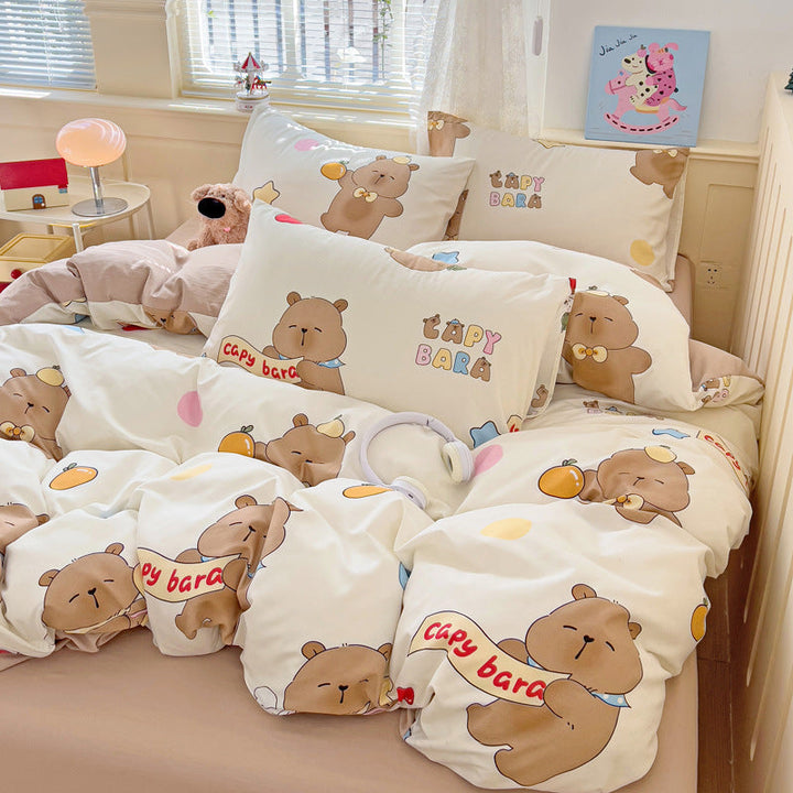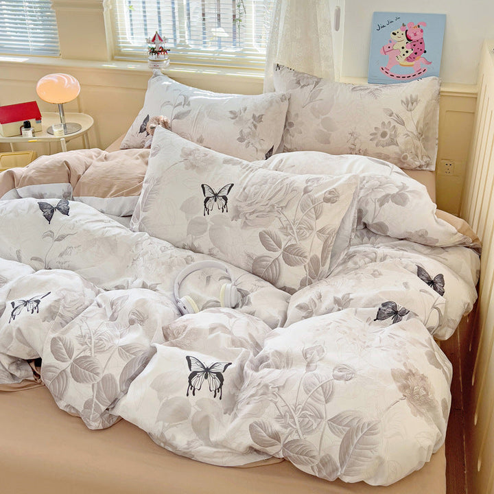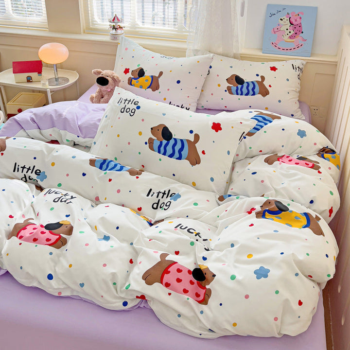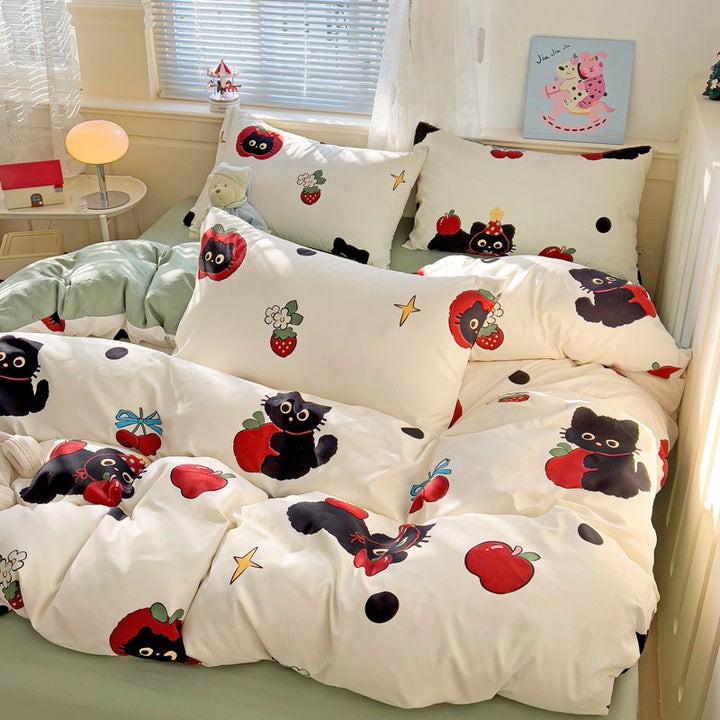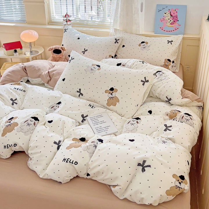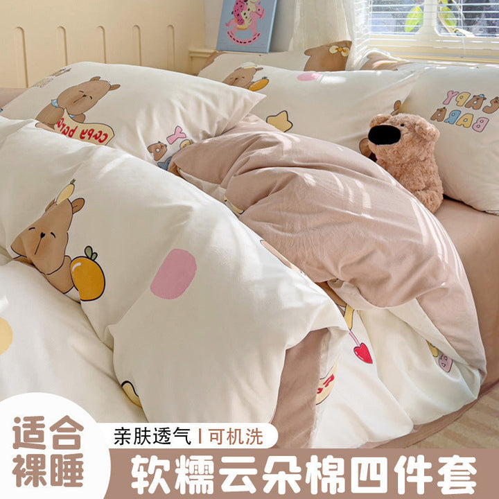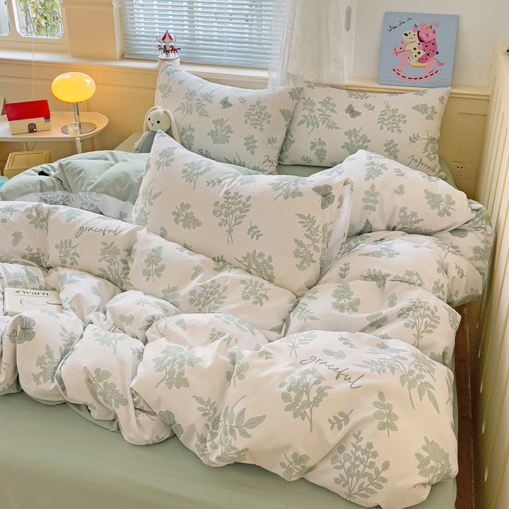 New small fresh four-piece set, student dormitory three-piece set, bed sheet, bed hat, household children's printed bedding