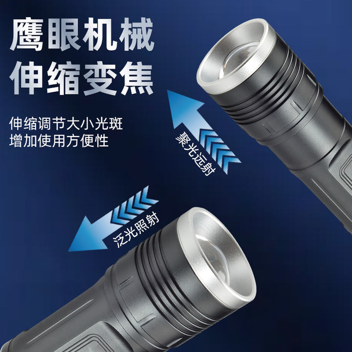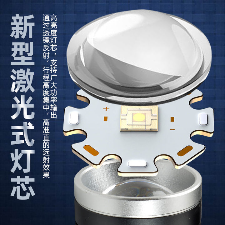 New small steel cannon strong light flashlight charging bright, portable multi-functional white laser led work lighting flashlight