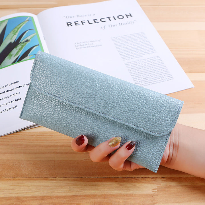 New soft leather thin Japanese and Korean version women's wallet long large capacity solid color lychee pattern mobile phone bag wallet women's bag