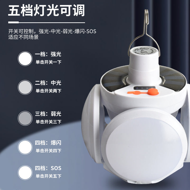 New Solar Football Light Foldable Solar Fan Light Outdoor Home Emergency Solar Bulb Light
