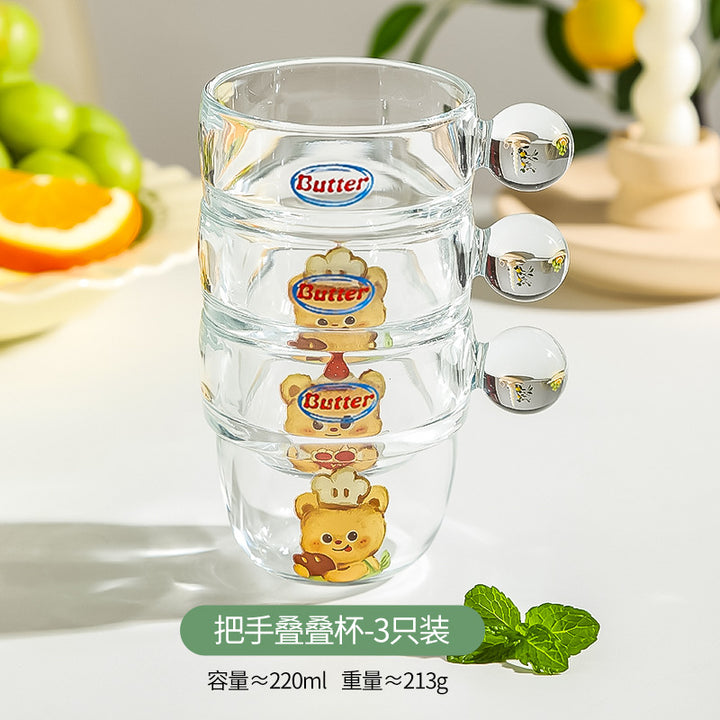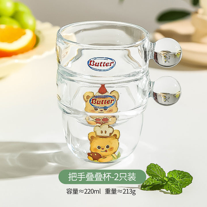 New stacking cup ins water cup cartoon glass women's high value cup milk tea cup juice cup co...