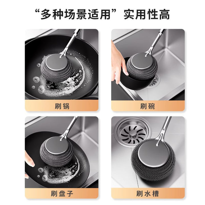 New stainless steel pot brush kitchen special pot washing steel wire ball brush long handle dishwashing cleaning brush pot brush artifact