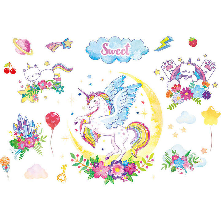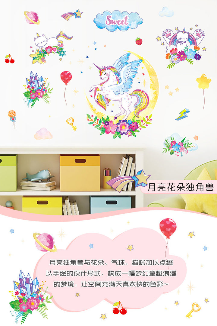 New sticker cartoon moon meow unicorn wall sticker children's room entrance door cabinet decorative sticker HT94011