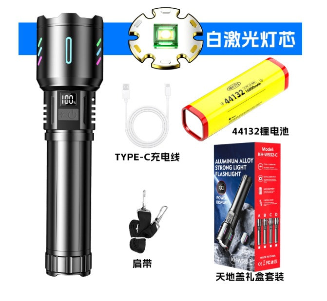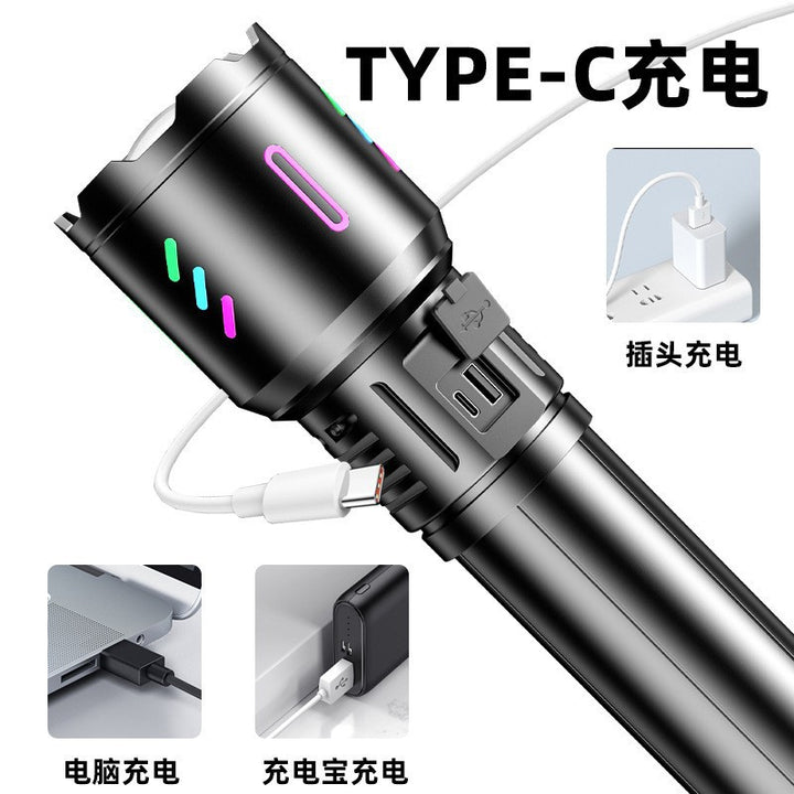 New strong light flashlight super bright Type-c charging hole patrol night fishing hiking long-range shooting multi-functional large flashlight