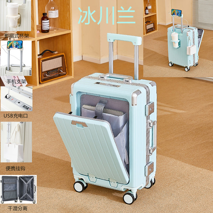New suitcase multi-functional aluminum frame front opening suitcase trolley case smart travel bag colorful parent-child