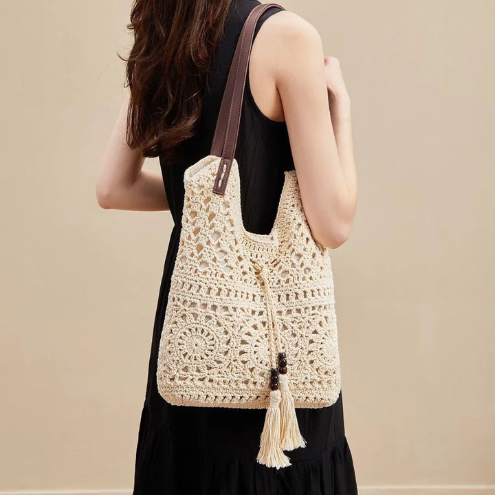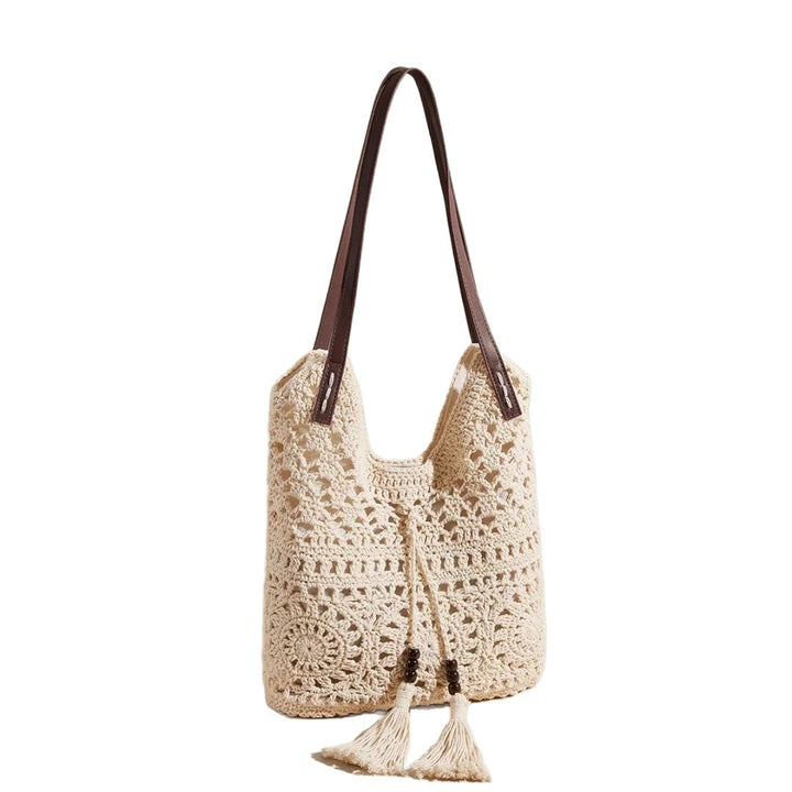 New summer tassel cotton thread shoulder straw bag hollow knitting bag casual retro beach bag fashion women's bag