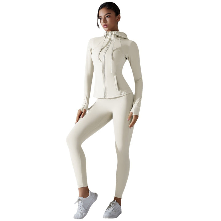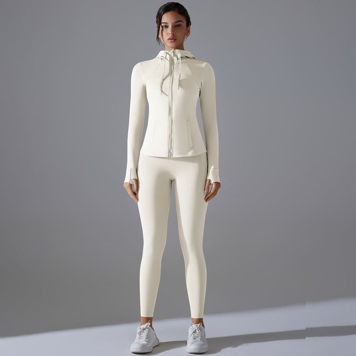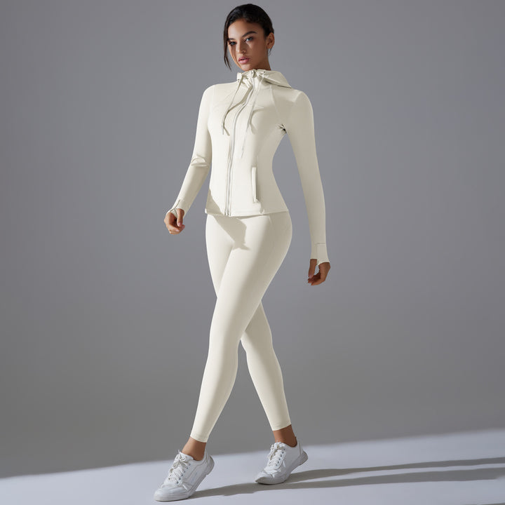 New sunscreen zipper jacket hooded yoga clothes high-intensity fitness clothes Pilates running sports long-sleeved set