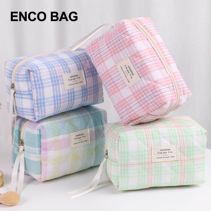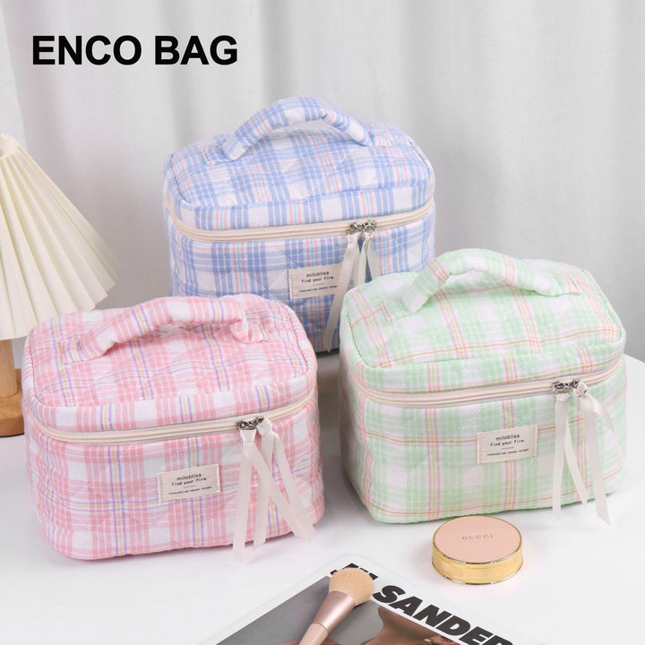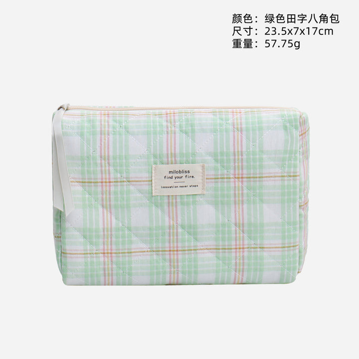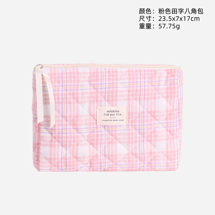 New Tian plaid quilted cute cosmetic bag large capacity toilet bag cosmetic storage bag ins h...