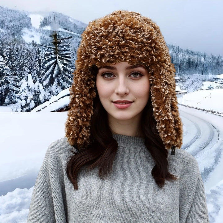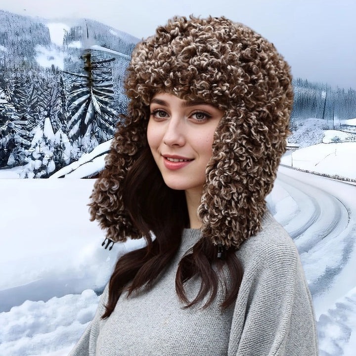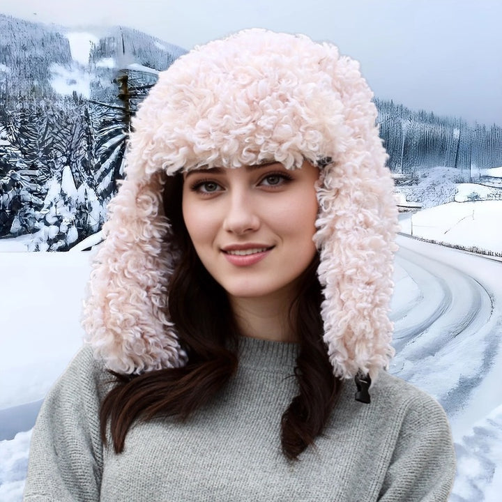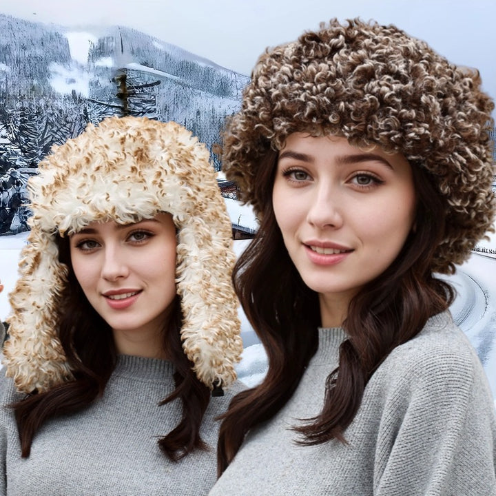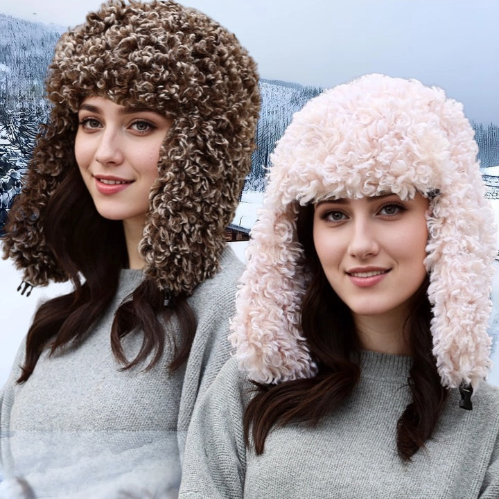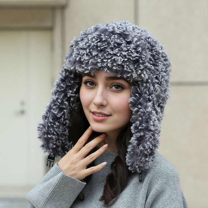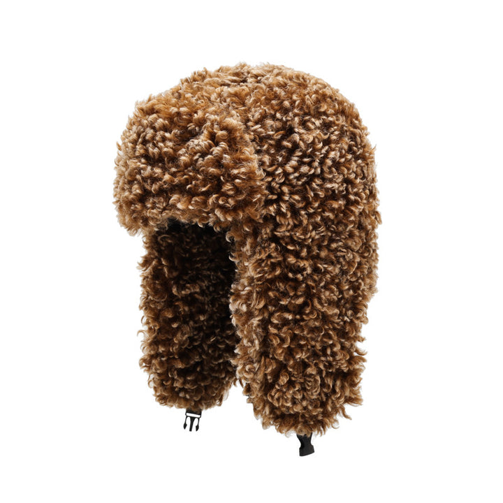 New two-color imitation lamb wool plush hat, ear protection warm hat, Lei Feng hat, women's face small warm hat skiing