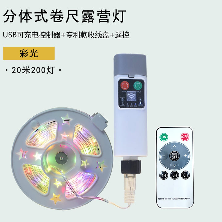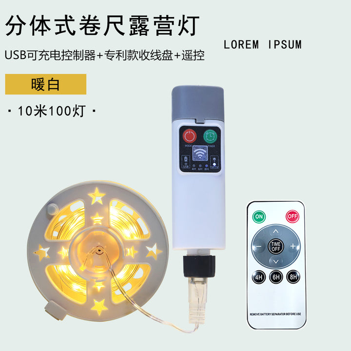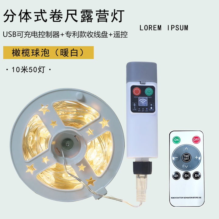 New USB rechargeable leather cable storage tray light string with remote control outdoor camping light tent atmosphere tape measure light string