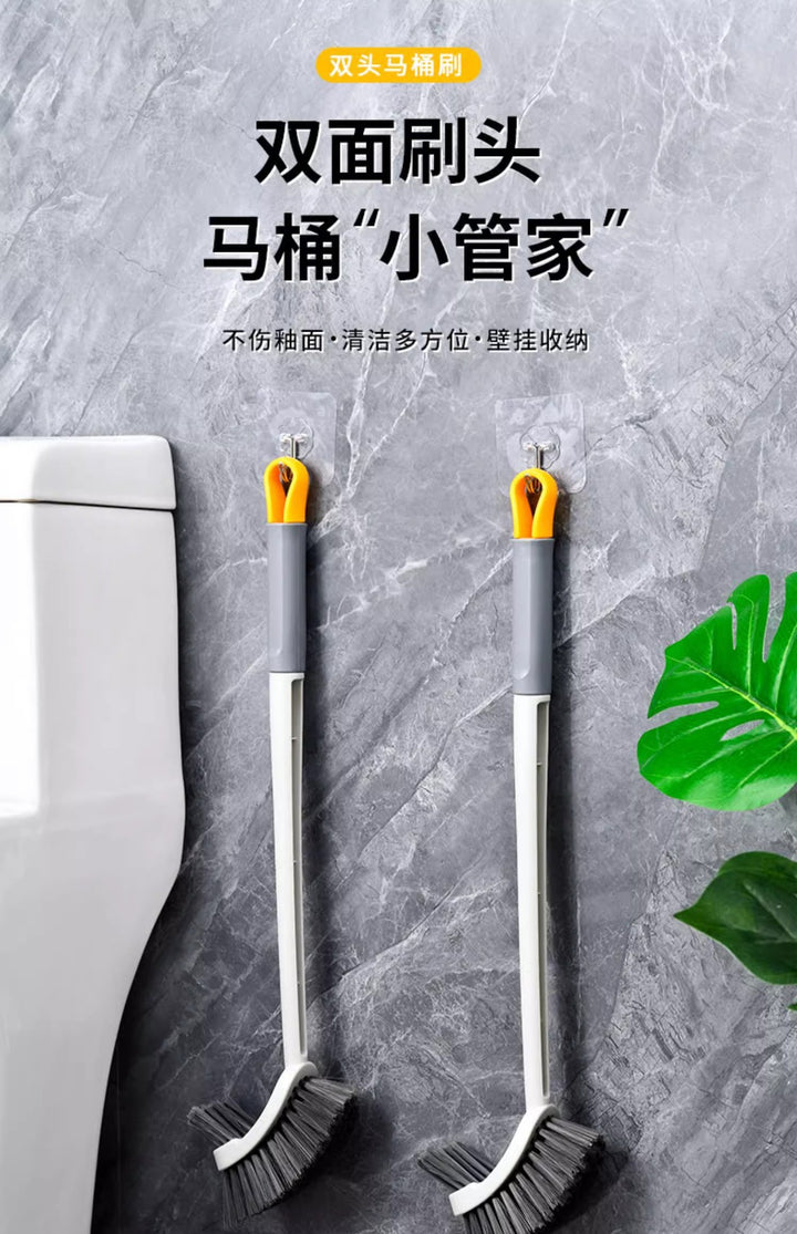 New wall-mounted long-handled toilet scrubbing toilet brush household no dead ends squatting pit double-headed double-sided cleaning brush
