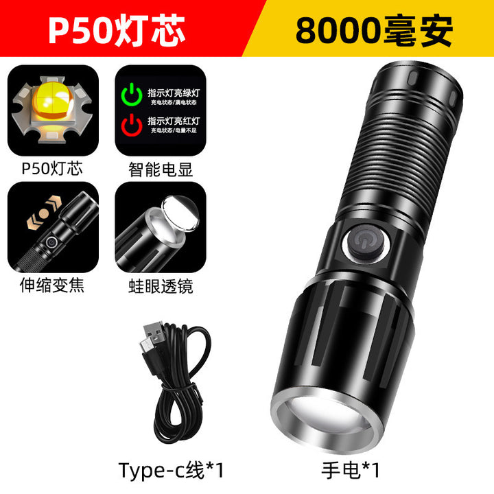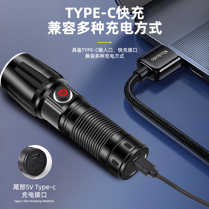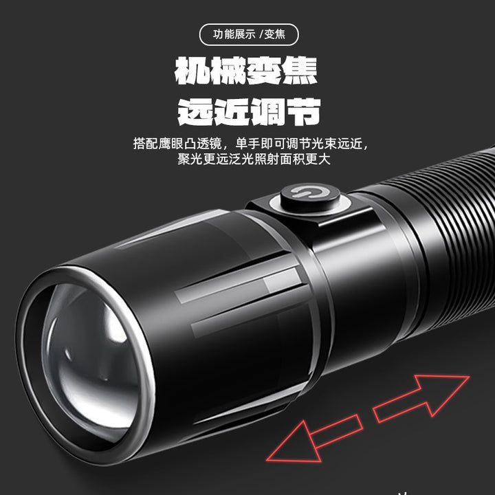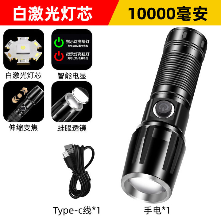 New white laser flashlight large capacity lithium battery zoom flashlight outdoor small porta...