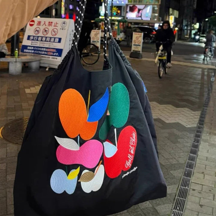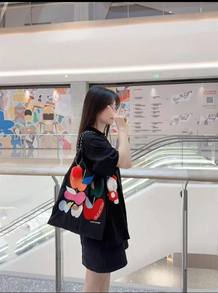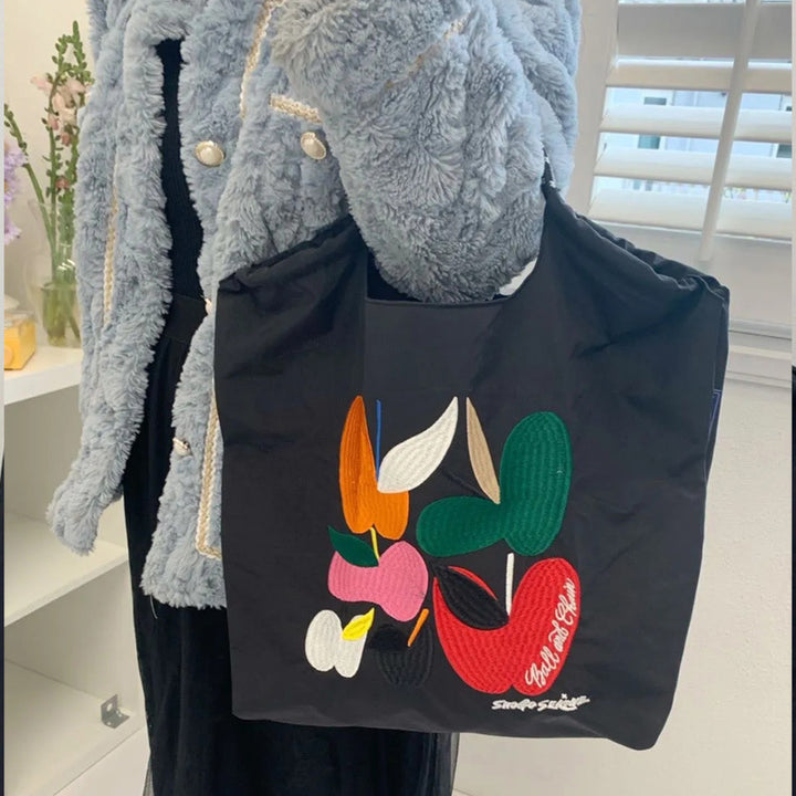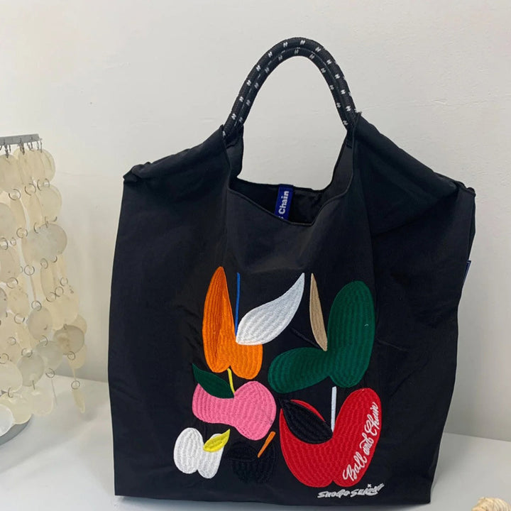 New women's bag embroidered nylon tote bag ball chain with the same Japanese shoulder bag Internet celebrity portable messenger bag