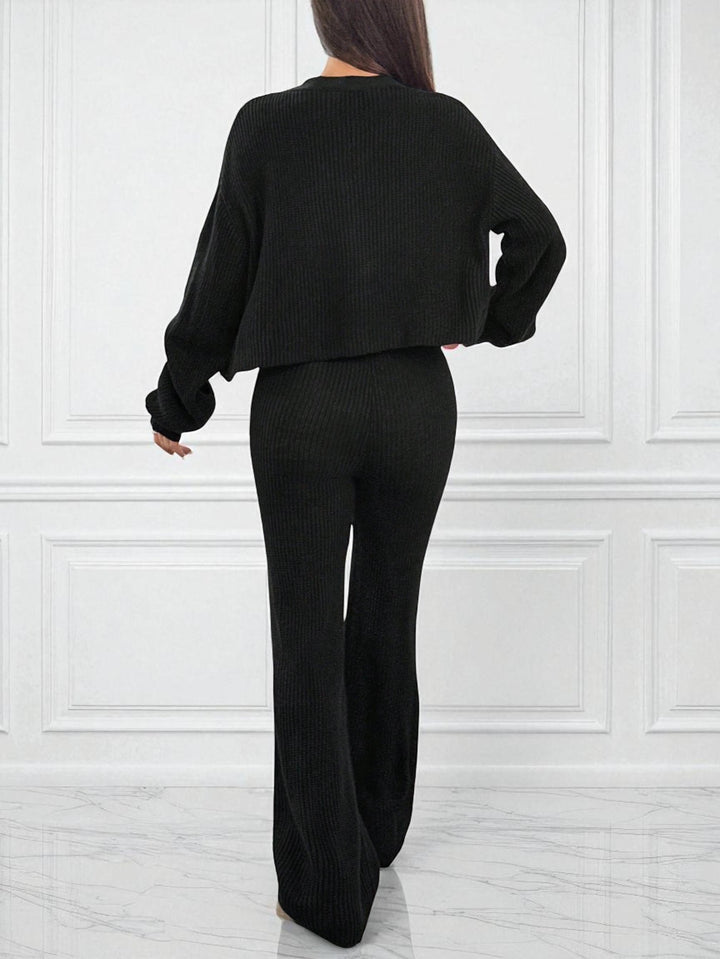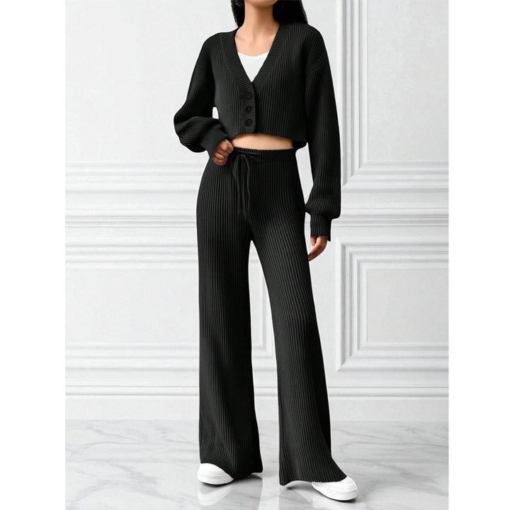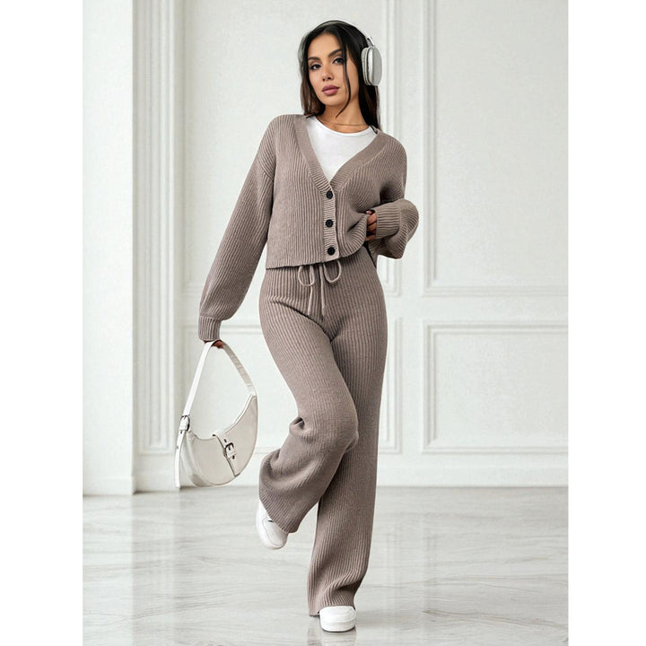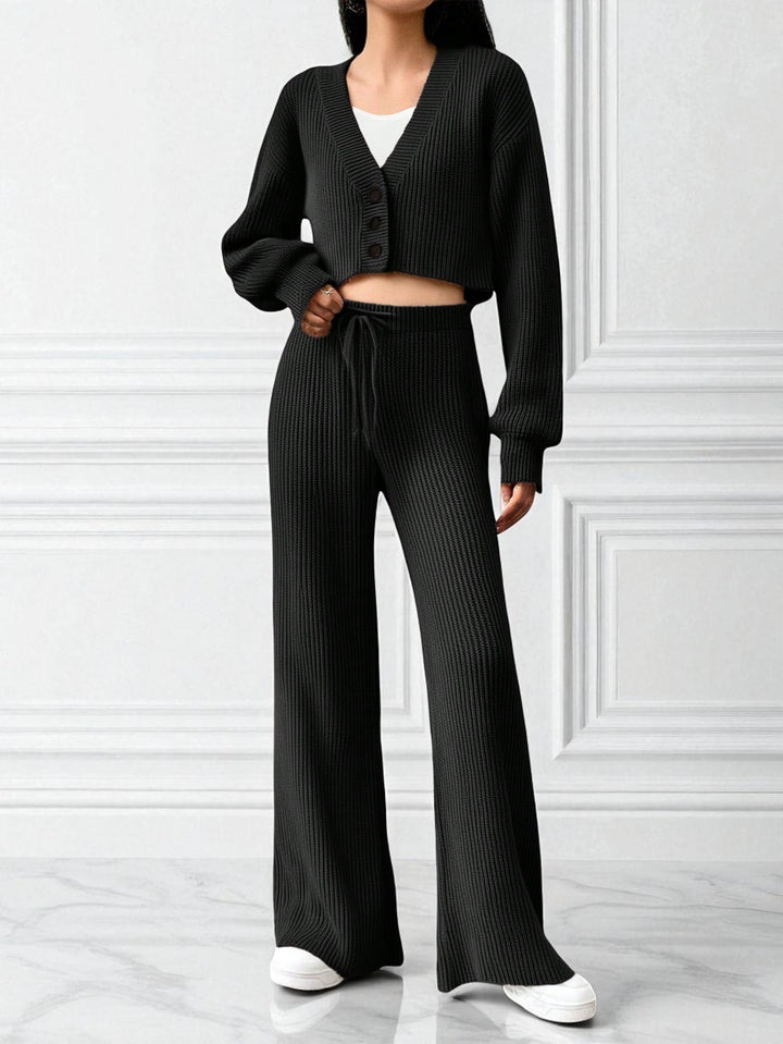 New women's clothing 2025 autumn and winter knitted cardigan high-waisted wide-leg pants two-piece set temperament casual suit