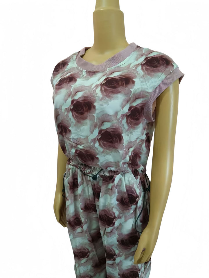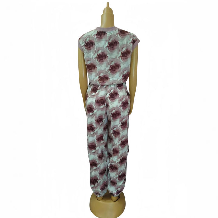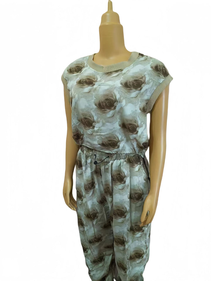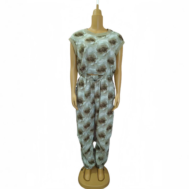 New women's clothing, fashionable and popular thread-printed round neck short-sleeved leggings casual suit 73013 #in stock