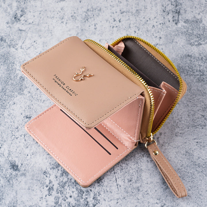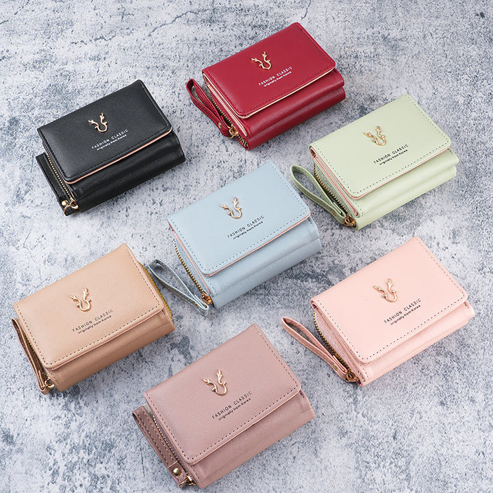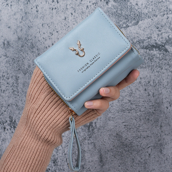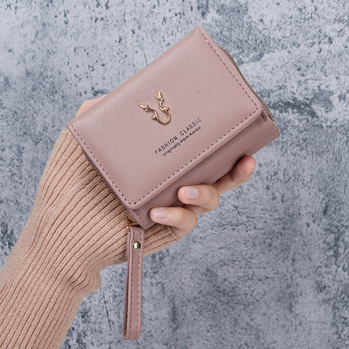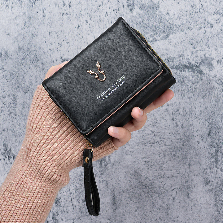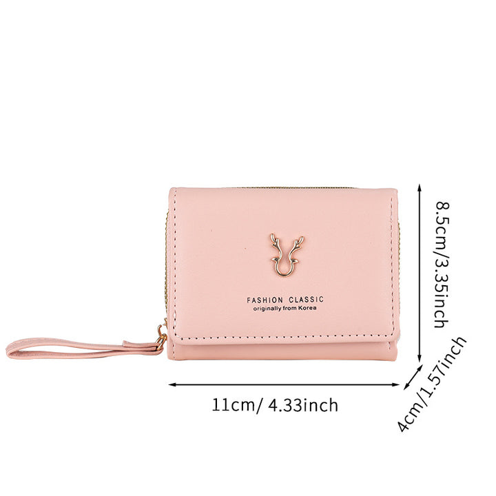 New women's wallet PU leather short antler wallet mini zipper change bag cartoon three-fold buckle card bag