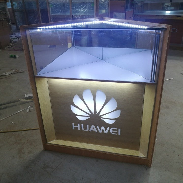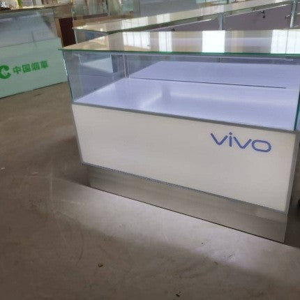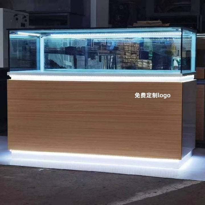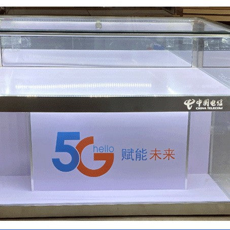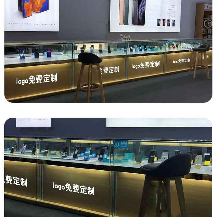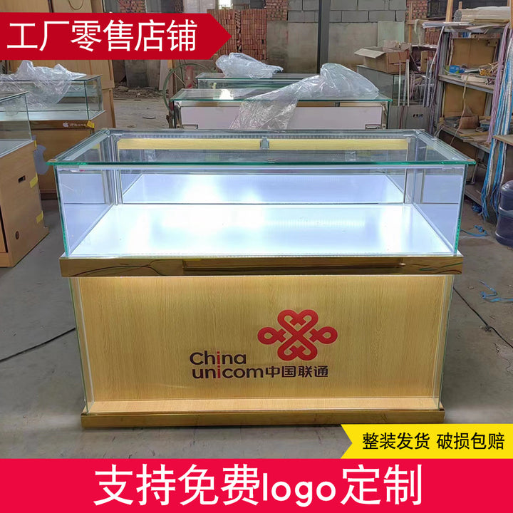 New Wood Grain Telecom 5G Jewelry Cabinet White Glass Display Cabinet Boutique Jewelry Jade Mobile Phone Counter
