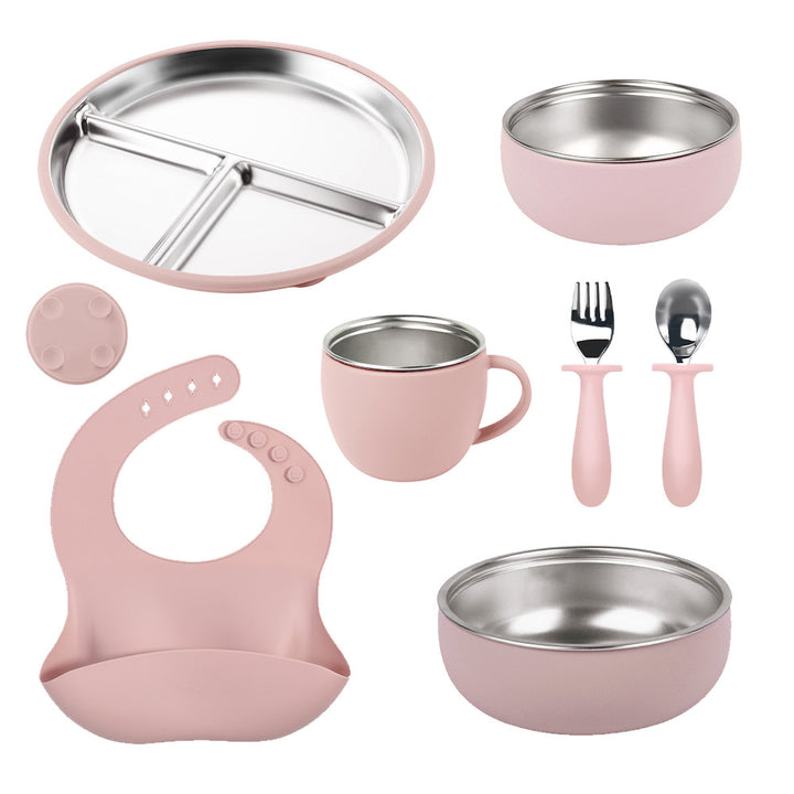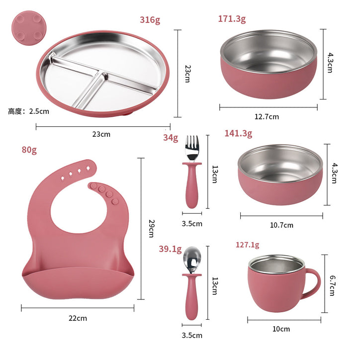New Yama Xun silicone 304 stainless steel dinner plate with suction cup set Children's silico...