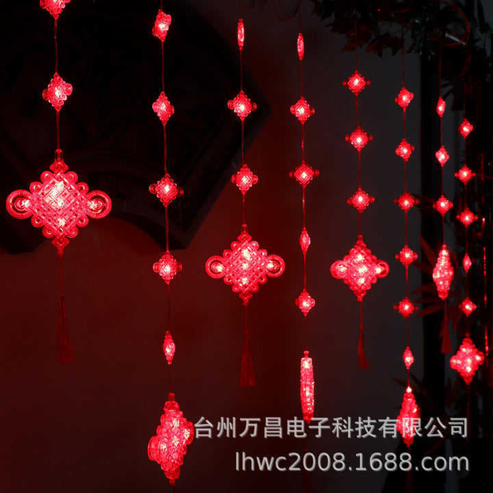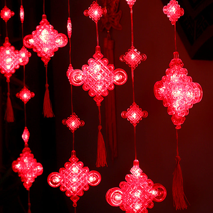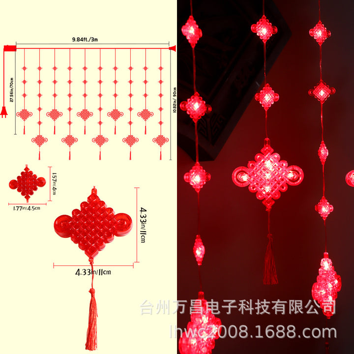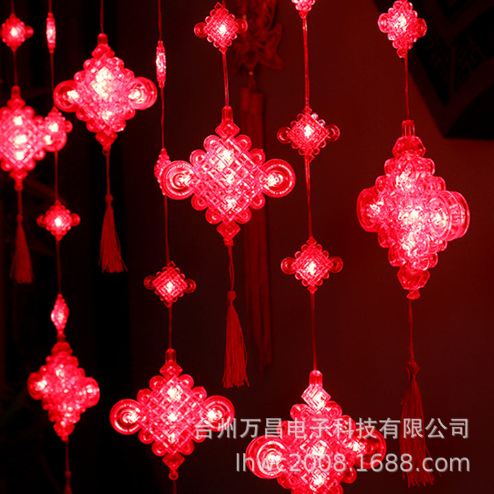 New Year Chinese knot curtain lights, indoor window decoration Spring Festival festive Chinese knot LED decorative lights