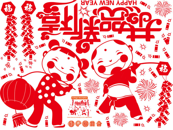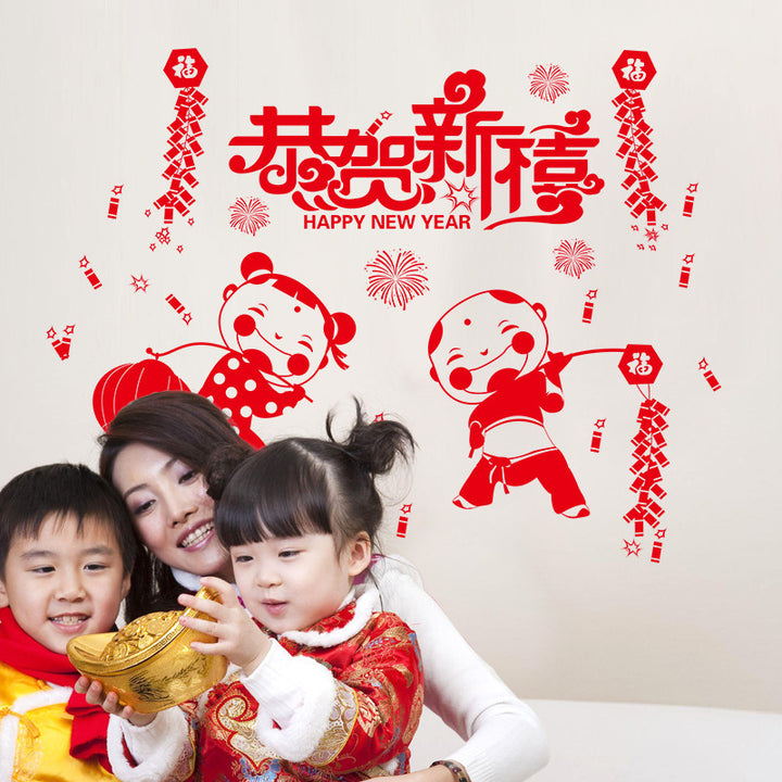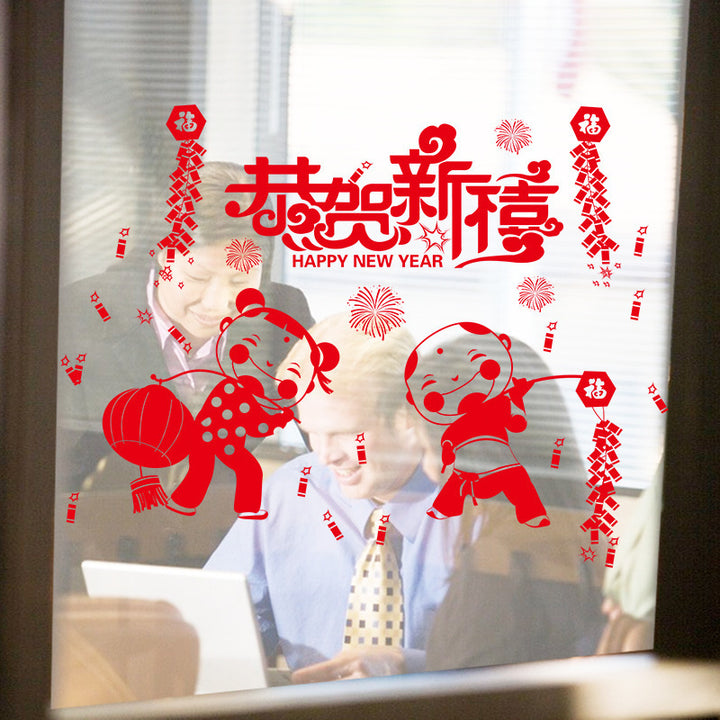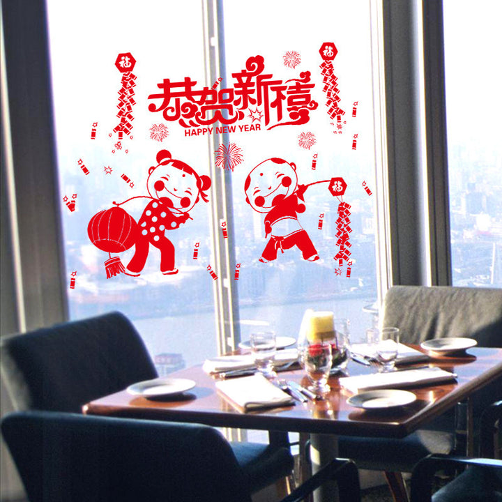 New Year's Eve lantern wall sticker window Spring Festival congratulations New Year decoratio...