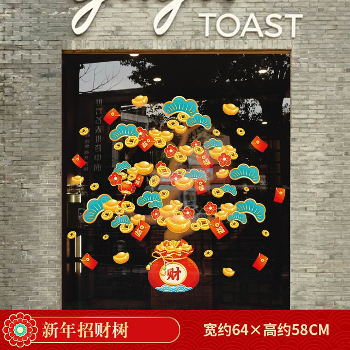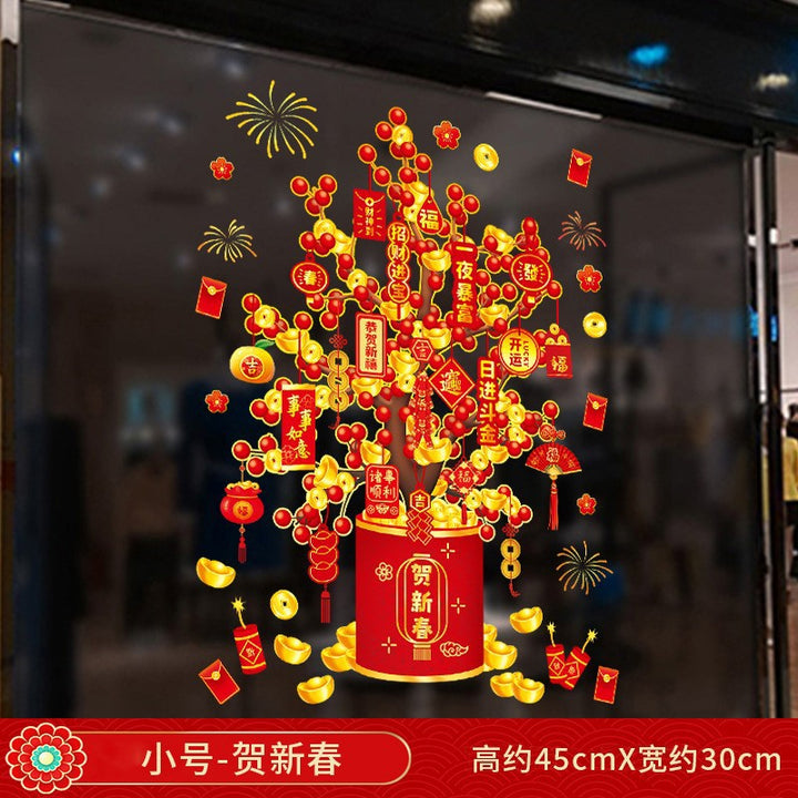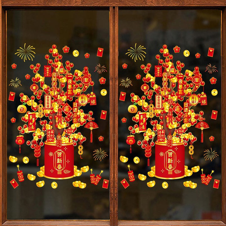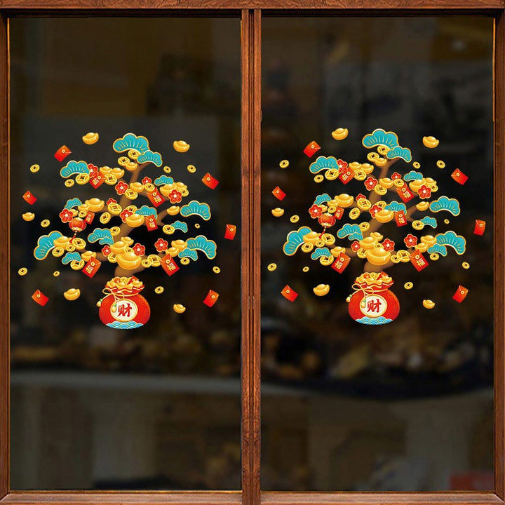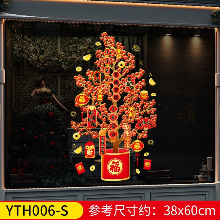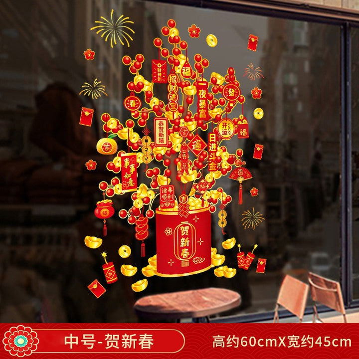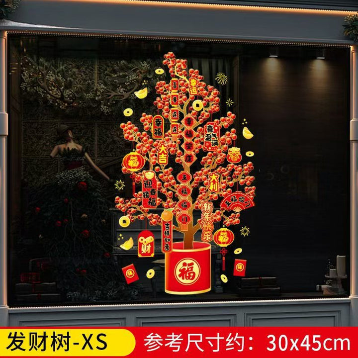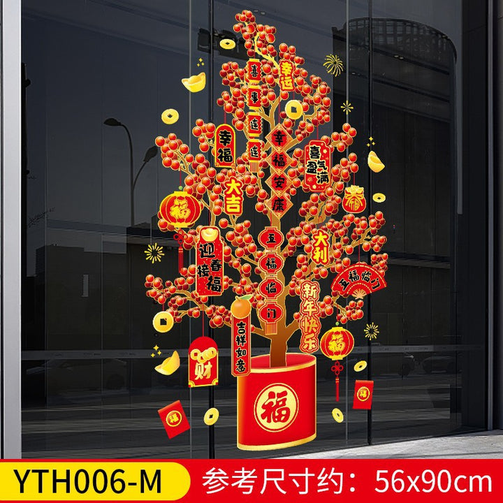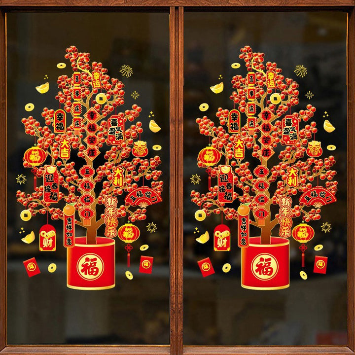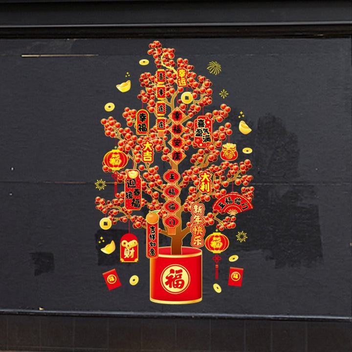 New Year's Fortune Tree Glass Arrangement Door Sticker Electrostatic Sticker Happy Spring Festival New Year Decoration Window Sticker Window Grilles