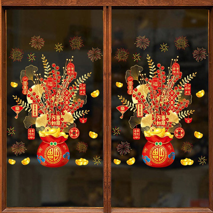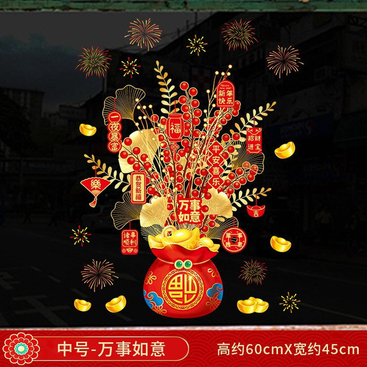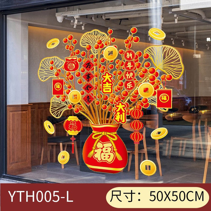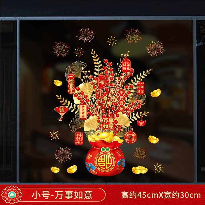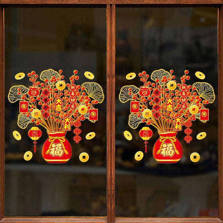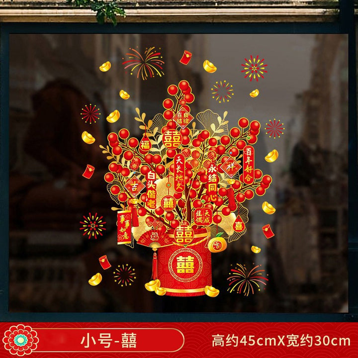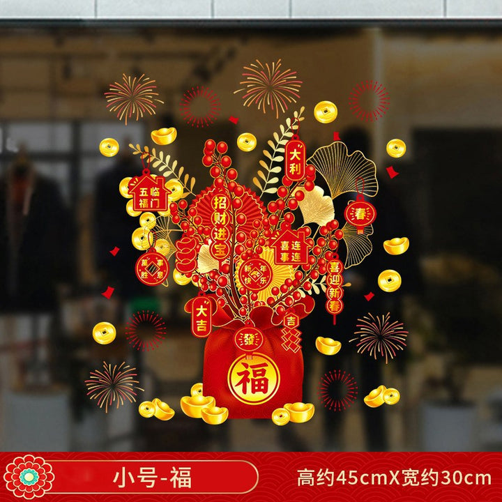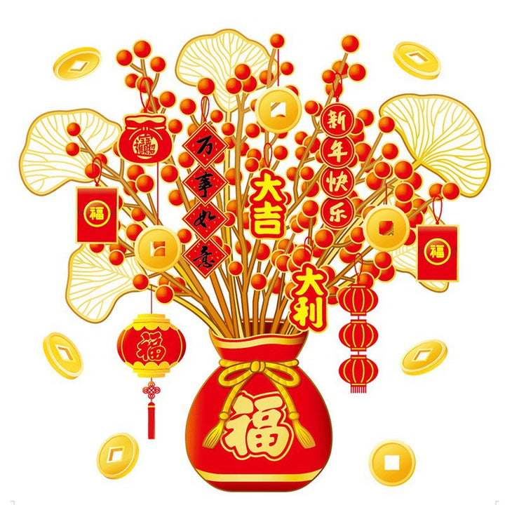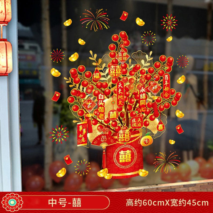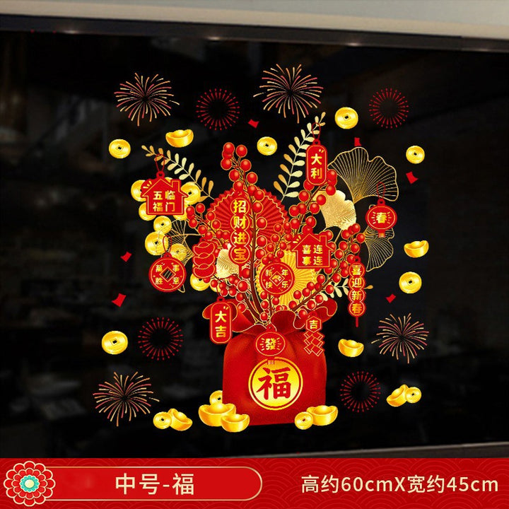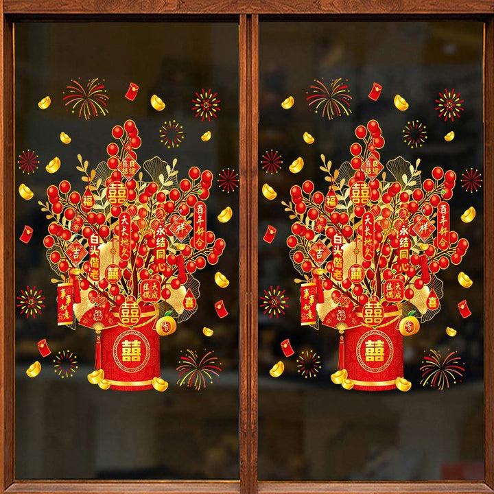 New Year's Fortune Tree Glass Arrangement Door Sticker Electrostatic Sticker Happy Spring Festival New Year Decoration Window Sticker Window Grilles