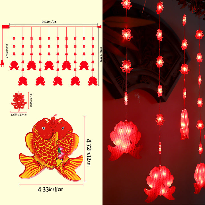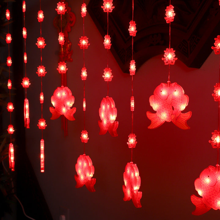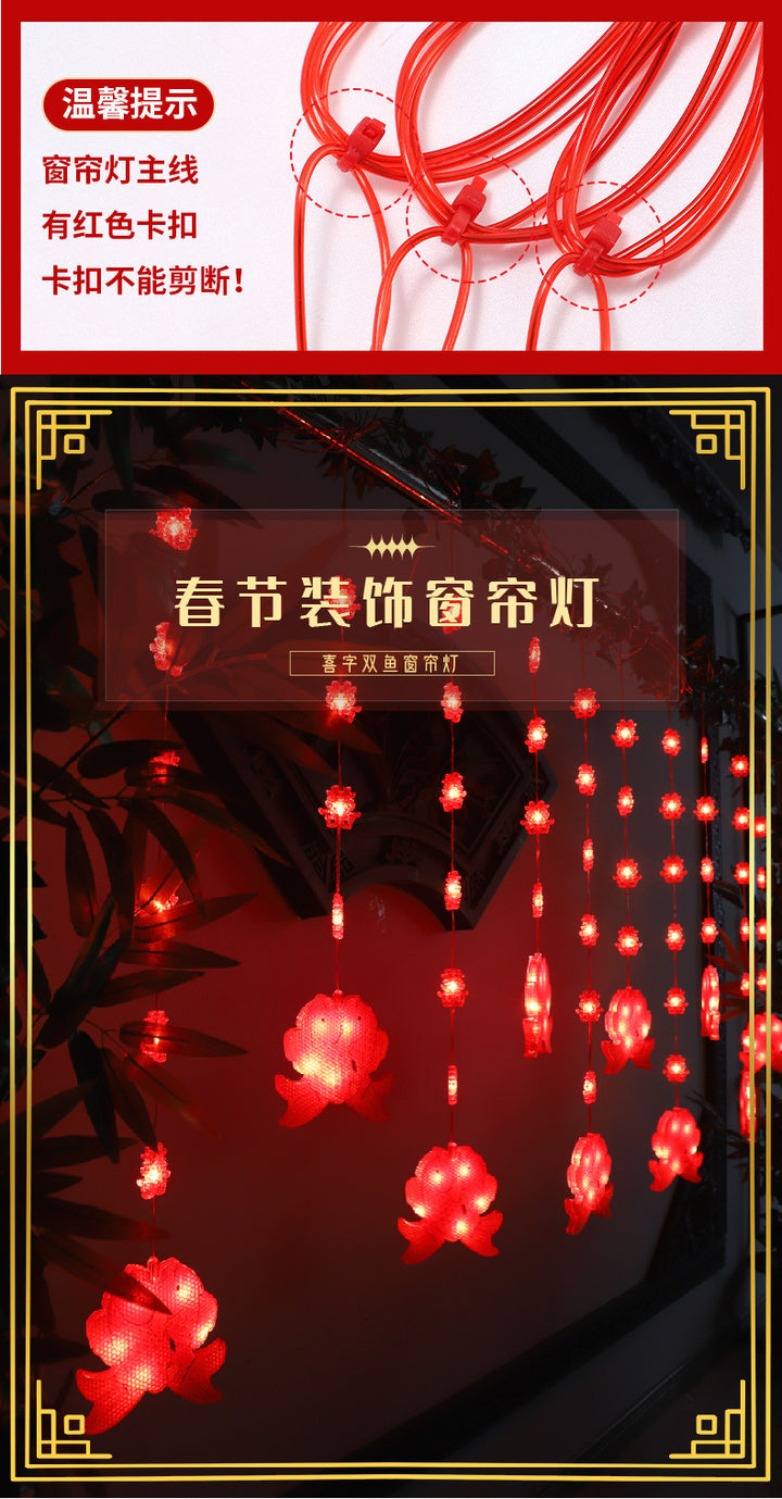 New Year's happy character Pisces curtain lights, indoor window decoration Spring Festival festive Chinese knot LED decorative lights