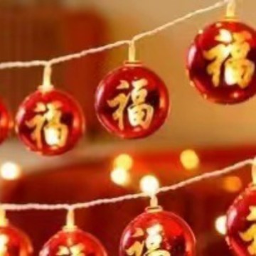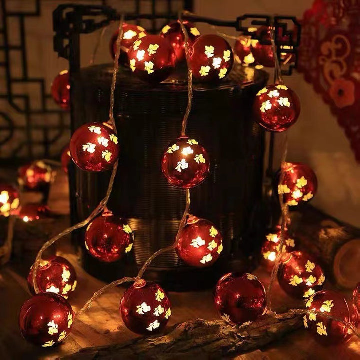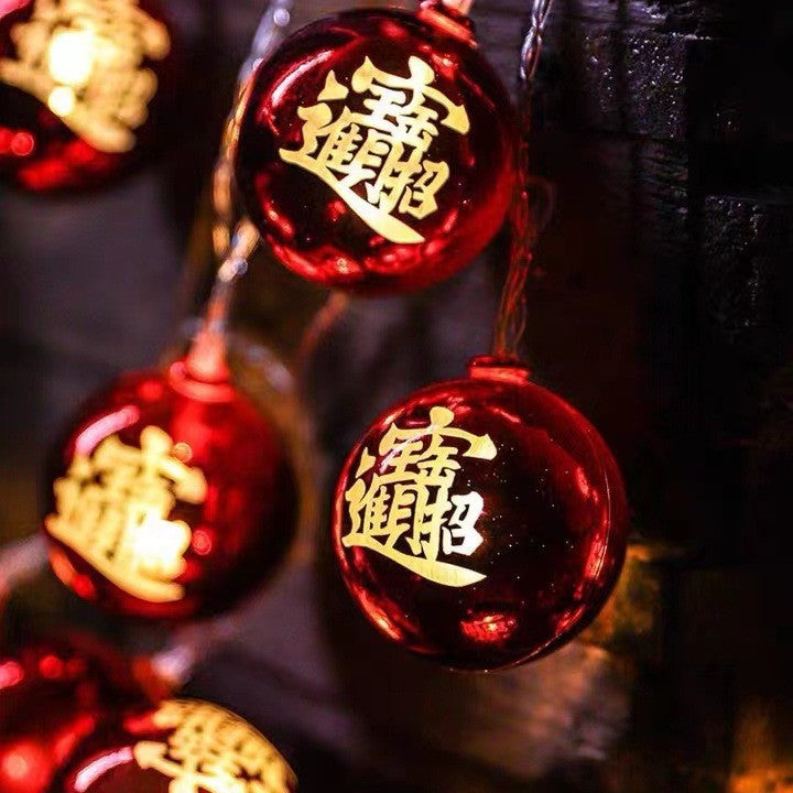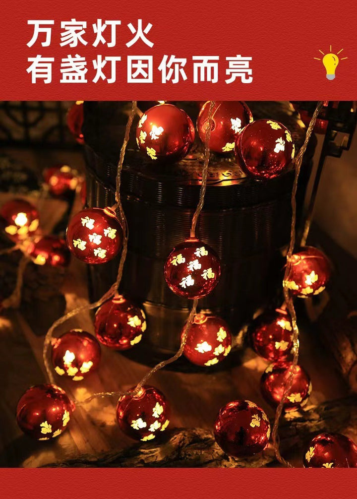 New Year's lanterns Fu character lamp string Wufu lamp string Spring Festival Chinese New Year lamp string decorative lamp electroplating ball lamp...
